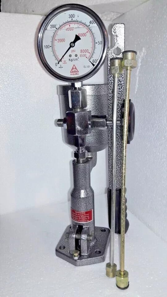 | Included Components | Die-cast aluminum injection pump with hand lever, Diesel Injector Nozzle Tester with stainless steel pressure gauge, High-pressure pipes (A & B types) with size nuts, Plunger, delivery valve, filter, and handle with grip, Semi-transparent fuel container with Bosch 5-micron filter |