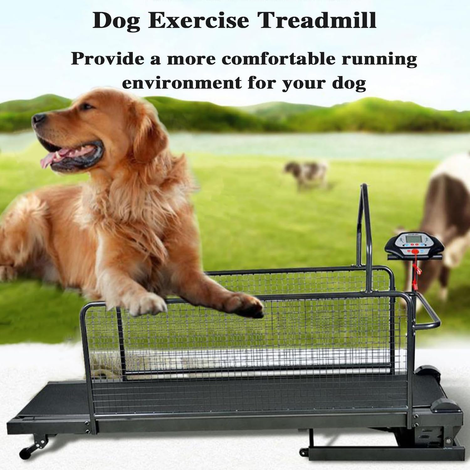 Professional-Grade Dog Treadmill for Safe & Effective Indoor/Outdoor ExerciseDesigned for large/medium dogs up to 220 lbs, this dog treadmill prioritizes safety with dual side safety rails to minimize distractions and a front crossbar for leash attachment. The low-profile platform ensures easy access, letting your pet step on/off effortlessly while staying securely guided during runs.Specification:Product name: Dog TreadmillsColor: BlackShow In Window: Speed. Time、Distance、 Calories. Up and downMotor Peak: 1.75HPSpeed Range: 0.8- 12km/hAllowable Weight: 100kg/220IbsRun With Size: 380* 1500mmRun Surface Thickness: 1.6mmRun Board Thickness: 15mmProduct Size: 1570*670*960mmN.W: 41.2kgPacking List:1* Dog TreadmillInvest in your dog’s lifelong health with this all-in-one exercise machine – where safety, convenience, and fun unite! 🐾