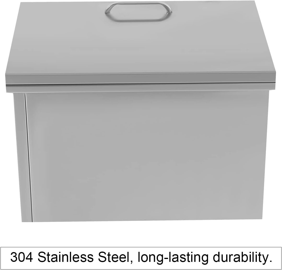 DescriptionIt's a great pleasure to have an iced drink in the hot summer. But traditionally electric refrigerator isn't available everywhere. This drop-in ice chest with a large capacity (40L/42.2Qt) is your ideal choice for outdoor activities. Made of high-quality stainless steel, it is strong, durable, and not easy to rust. The excellent insulation performance can bring you cold drinks for a long time. It will be a great addition to your outdoor party.Details1. Ergonomic Handle: The handle on the lid is curved and ergonomic with a smooth surface, which makes it easy for you to open or close the lid and can prevent scratching your hands.2. Lid: The lid makes the product well sealed to allow for a better insulation effect and prevent the internal ice or drinks from being contaminated. Meanwhile, the two hinges make it easy for you to open and close the lid.ApplicationIt is widely used in dinner parties, parties, bars, kitchens, offices, etc. for keeping wine, beer, whiskey, beer, cocktails, vodka, juice, and frozen food fresh.SpecificationColor: SilverMaterial: 304 Stainless SteelShape: RectangularCapacity: 40L/42.2QtInsulation Temperature Range: -5℃-91℃/23℉-194℉Foam Insulation Layer Thickness: 2cm/0.78inNet Weight: 9kg/19.84lbsGross Weight: 10kg/22.1lbsPackage Size: 55*40*39cm/21.7*15.7*15.4inchProduct Size: 50.5*35.5*33cm/20*14*13inchWater Drainage Hose Length: 1m/3.2ftPackage Included1* Drop-in Ice Chest1* Lid1* Handle1* Water Drainage Hose1* Filter BasketOther Accessories for Assembly