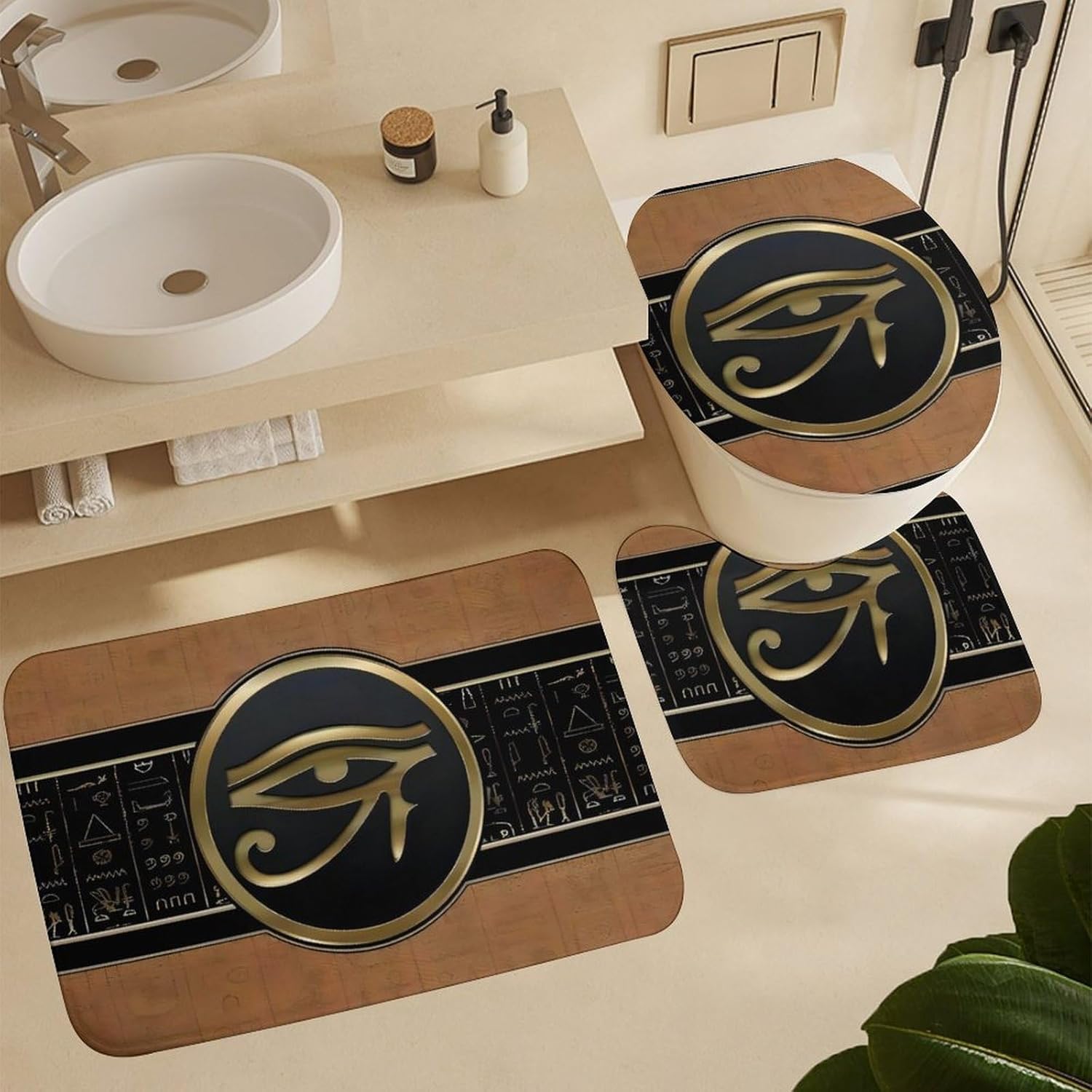 Our elegant bathroom rug and mat set are made of premium flannel which is soft and when you step right out of the bath or shower, you will feel like stepping onto a cloud! Strong Adhesion which can stick to the floor and it won't run away. they can absorb water in a few seconds and protect your floor from moisture.The material is thick and soft to help soothe tired feet and keep your toes warm on cold floors. The high density and fullness of chenille provide superior comfort and support for your feet.The luxurious toilet seat absorbs large amounts of water and keeps the floor dry. When you step out of the tub, Jacuzzi, shower, or get ready at the sink, moisture is trapped in the deep pile of the bathroom rug to avoid dripping water from disturbing the peace and tidiness of your bathroom.The non-slip-backed bathroom rug is covered by a high-quality natural non-woven dotted plastic that keeps the bathroom rug firmly in place. The heavy-duty non-woven dotted plastic construction gives the mat a strong grip to prevent your family from slipping and sliding.