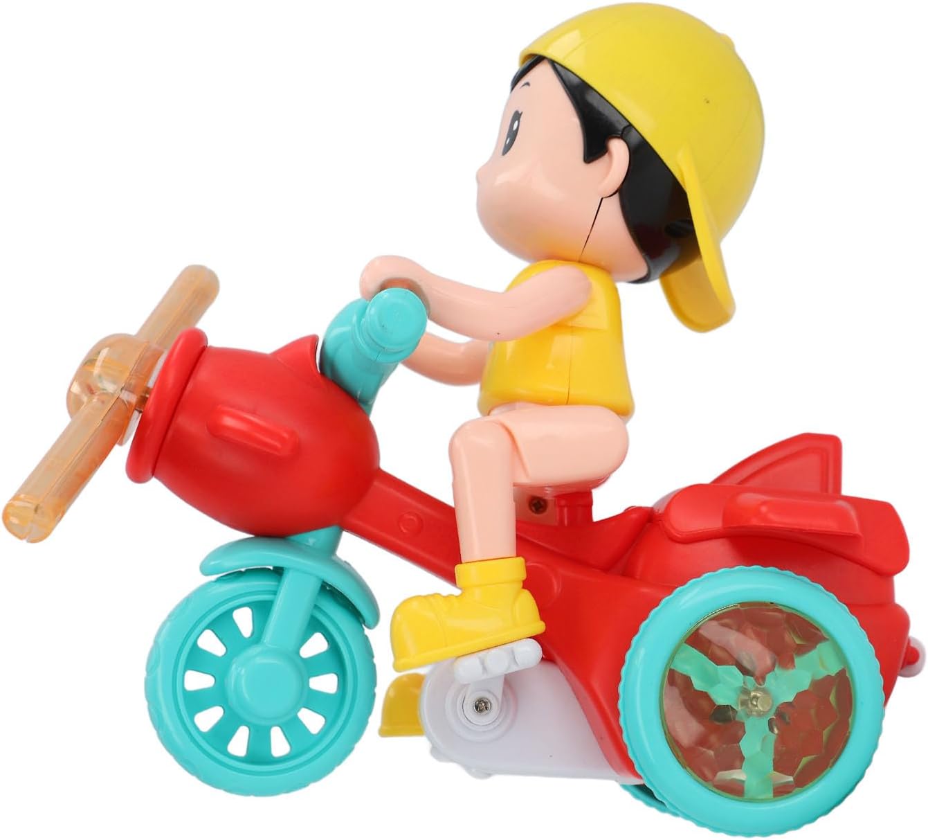 [Safe and Durable] Sturdy material ensures safety, sturdiness and drop resistance, providing comfort for your child. [Attractive Design] Dazzling appearance with cute shape, designed to please toddlers and improve play time. [Development Game] Removable parts that can be flexibly combined help to develop operational abilities and imagination. [Smooth Movement] The toy tricycle moves smoothly, with a 360 degree rotating front wheel for more comfort.Fun. [Enhanced Sensory Experience] Equipped with cool lights and dynamic music for a sensory rich gaming experience. Specifications: Item type: electric tricycle toy Material: ABS Battery: 3 x AAA batteries (not included) Package List: 2 x toys. 1 x accessory.