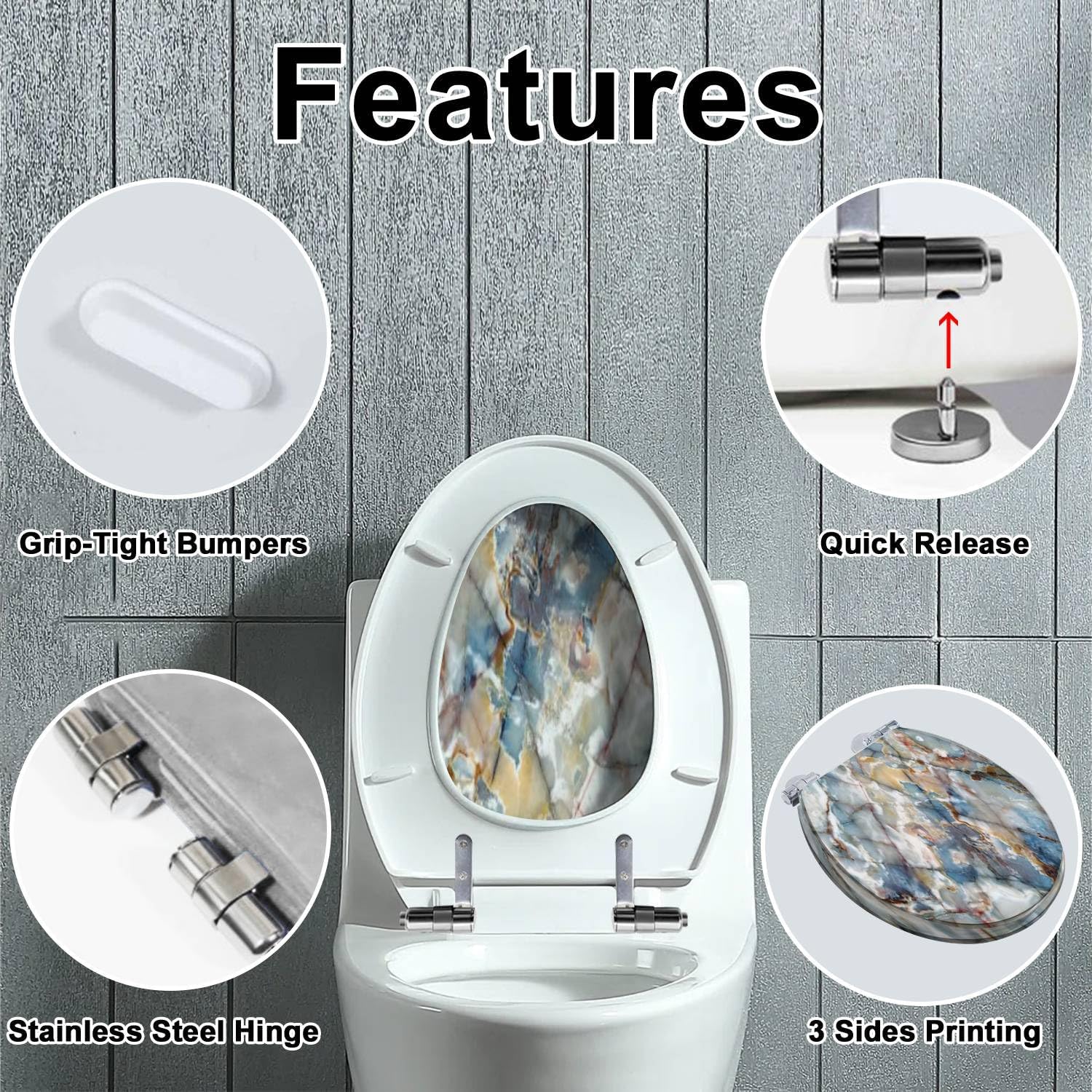Features -Material: resin -Size: fits most elongated bowls -Creative Appearance-Easy to install and remove (accessories and instruction included) -Easy to cleanNotes* Please turn the hinge out 180° before installation, otherwise it will affect the installation size of the toilet cover. * Installation accessories in the box corner, please find it before throw the wrapping box away.* Please allow tiny size difference for manual measurement.* If there is any question, please contact our customer service directly and will help you to solve.