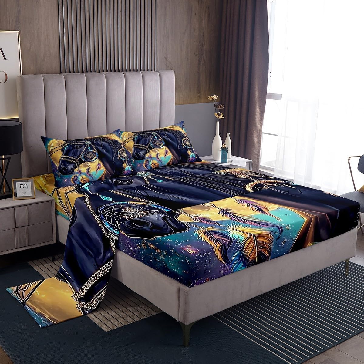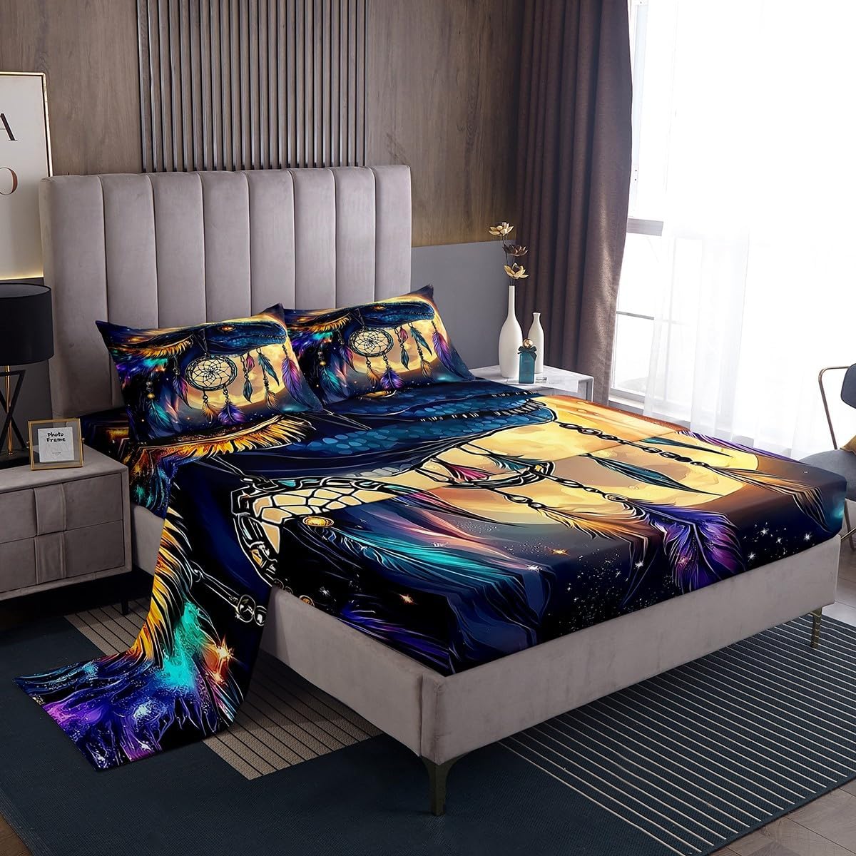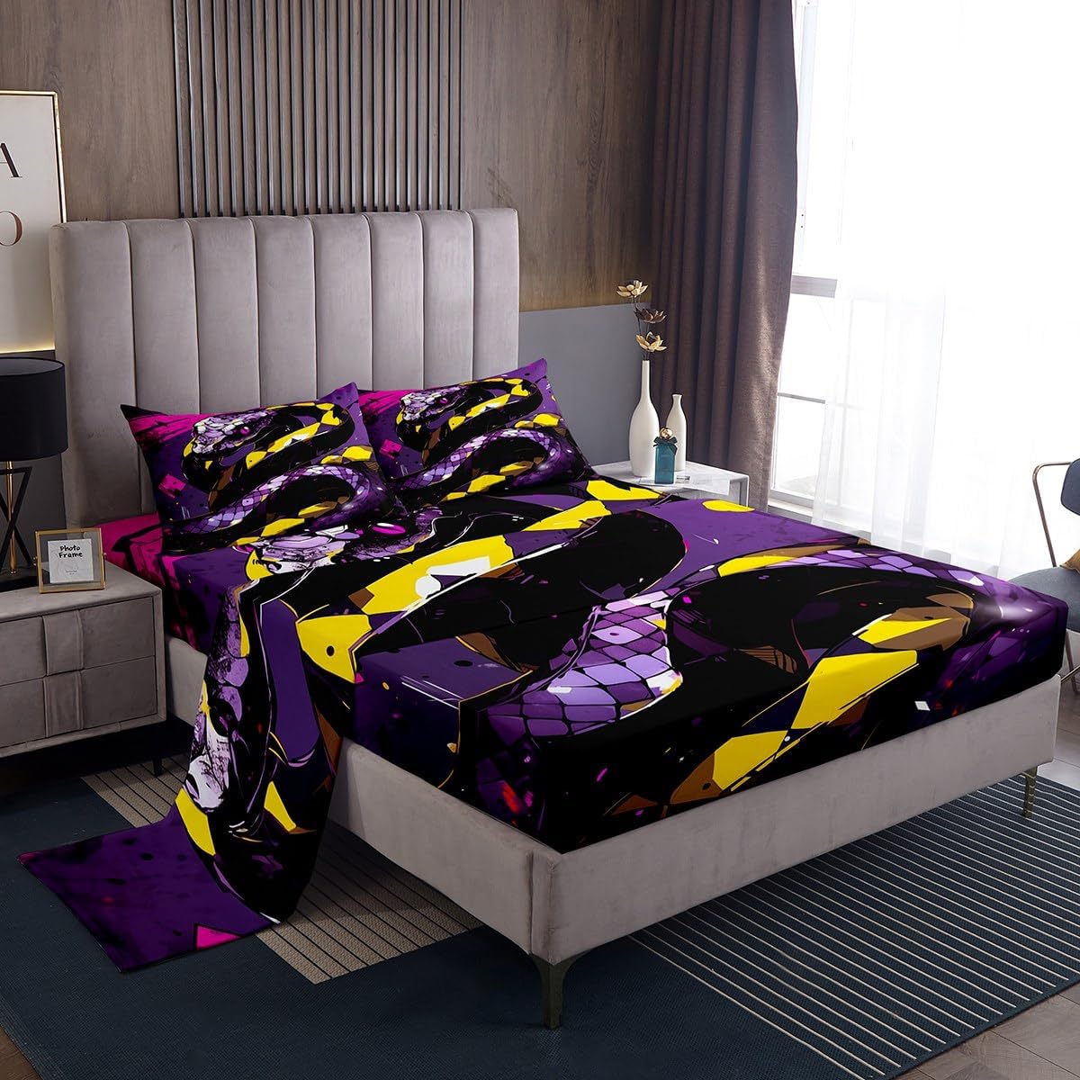 Welcome to our store We have specialized in home textile for many years We are contribute to provide the excellent customer service and products Size Imformation Twin size: 1 Fitted Sheet 39"x75"x16" and 1 Flat Sheet 96"x66" and 1 Pillowcase 20"x30" Full size: 1 Fitted Sheet 54"x75"x16" and 1 Flat Sheet 96"x81" and 2 Pillowcases 20"x30" Queen size: 1 Fitted Sheet 60"x80"x16" and 1 Flat Sheet 102"x90" and 2 Pillowcases 20"x30" King size: 1 Fitted Sheet 78"x80"x16" and 1 Flat Sheet 106"x90" and 2 Pillowcases 20"x36" Versatility We have many kinds of styles for you to choose. You can easily find a product that suits the style of your room The item is not only suitable for your home, such as bedroom, guest room, living room or RV, but also great gifts for Christmas, New Year, Halloween, Thanksgiving Day, housewarming, birthday, Valentine's Day, Wedding Engagement gifts. For your kids, mom, dad, wife, husband, friends, boyfriend, girlfriend Modern Design The luxury aesthetic bedding sheets are made by reactive printing and dyeing process. The pattern is clear, the color is lasting and bright, which will not fade after repeated washing No Harmful chemicals or dye substance Personalized As a manufacturer of digital printed home textiles, we follow current trends and bring you the latest and stylish home textile products The item will make the room decorated in exquisite taste We sincerely hope you'll love the bed set But if you consider that it is not fit for your home for any reasons, please send an email to us