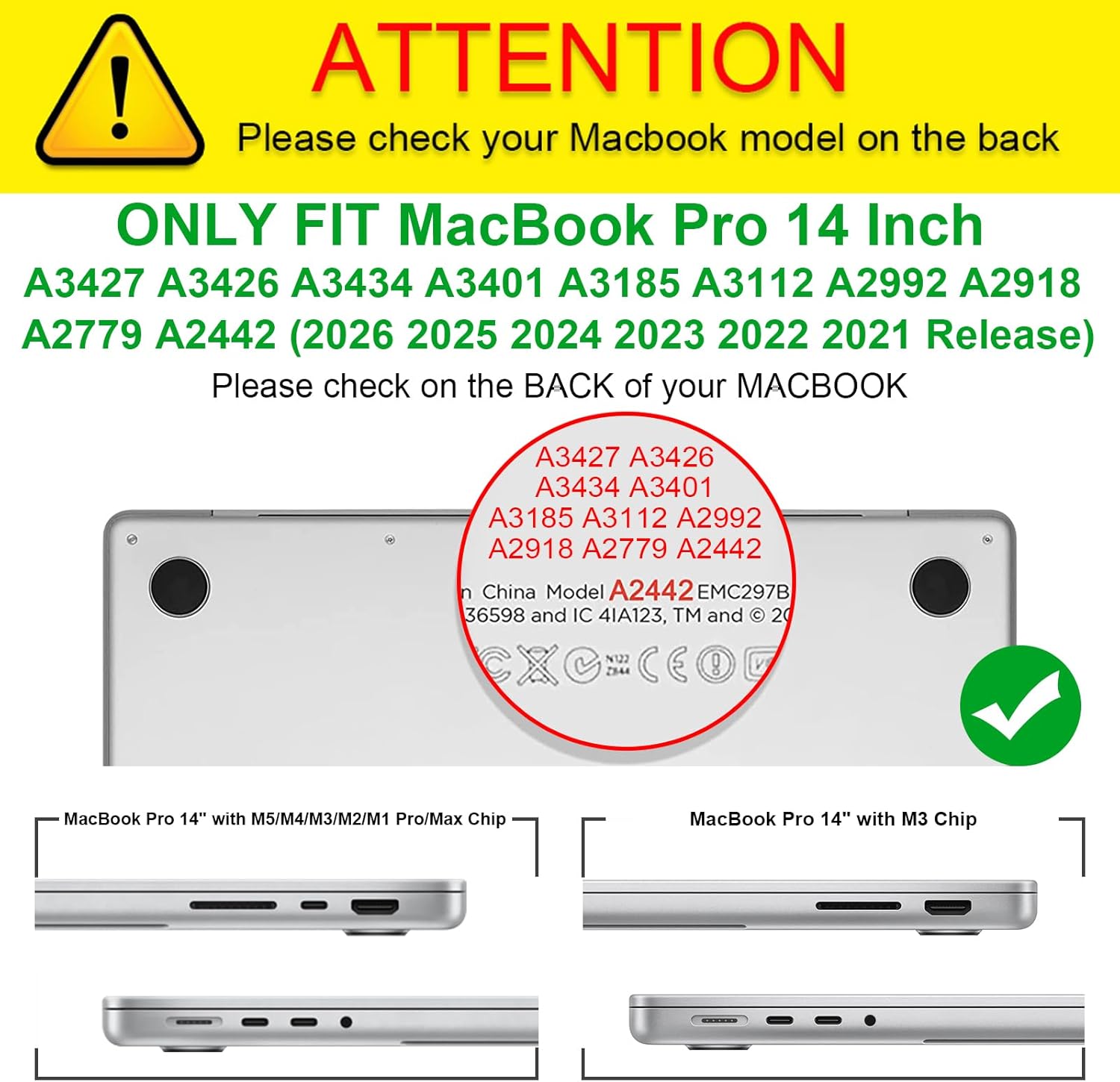 | Compatible Devices | MacBook Pro 14 Inch A2442 A2779 A2918 A2992 A3112 A3185 A3401 A3434 A3426 A3427 (2021 2022 2023 2024 2025 2026 Release) |