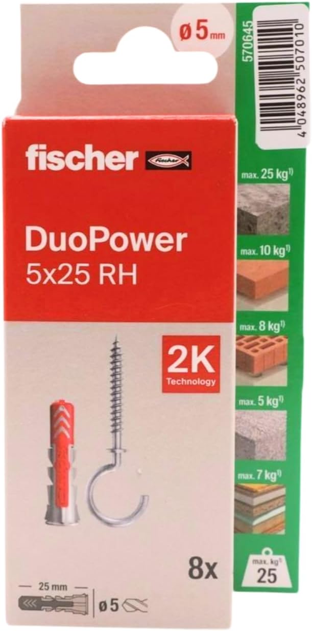 | Included Components | 8 x Duopower 5 x 25 with hooks |