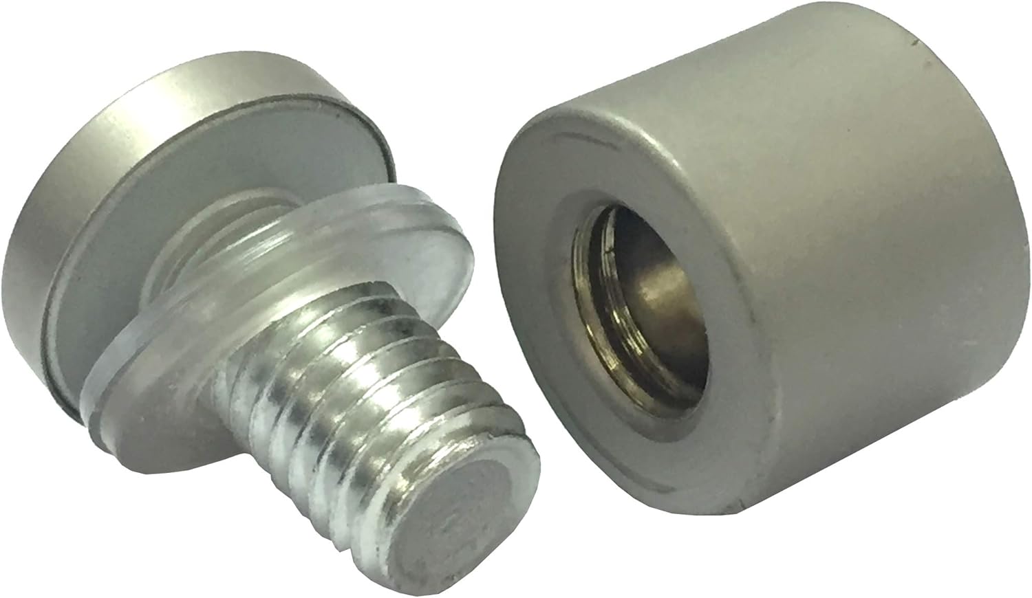 • FixtureDisplays Sand Blast Matte Stainless Steel Advertisment Nails 19 x 20mm Standoff Hardware for Glass Plexiglass Frames. These decorative standoffs are easy to install. Perfect to use in glass, plexiglass, as a standoff pin for flush mounted or surface mounted glass attachments. Nut diameter 0.75".
