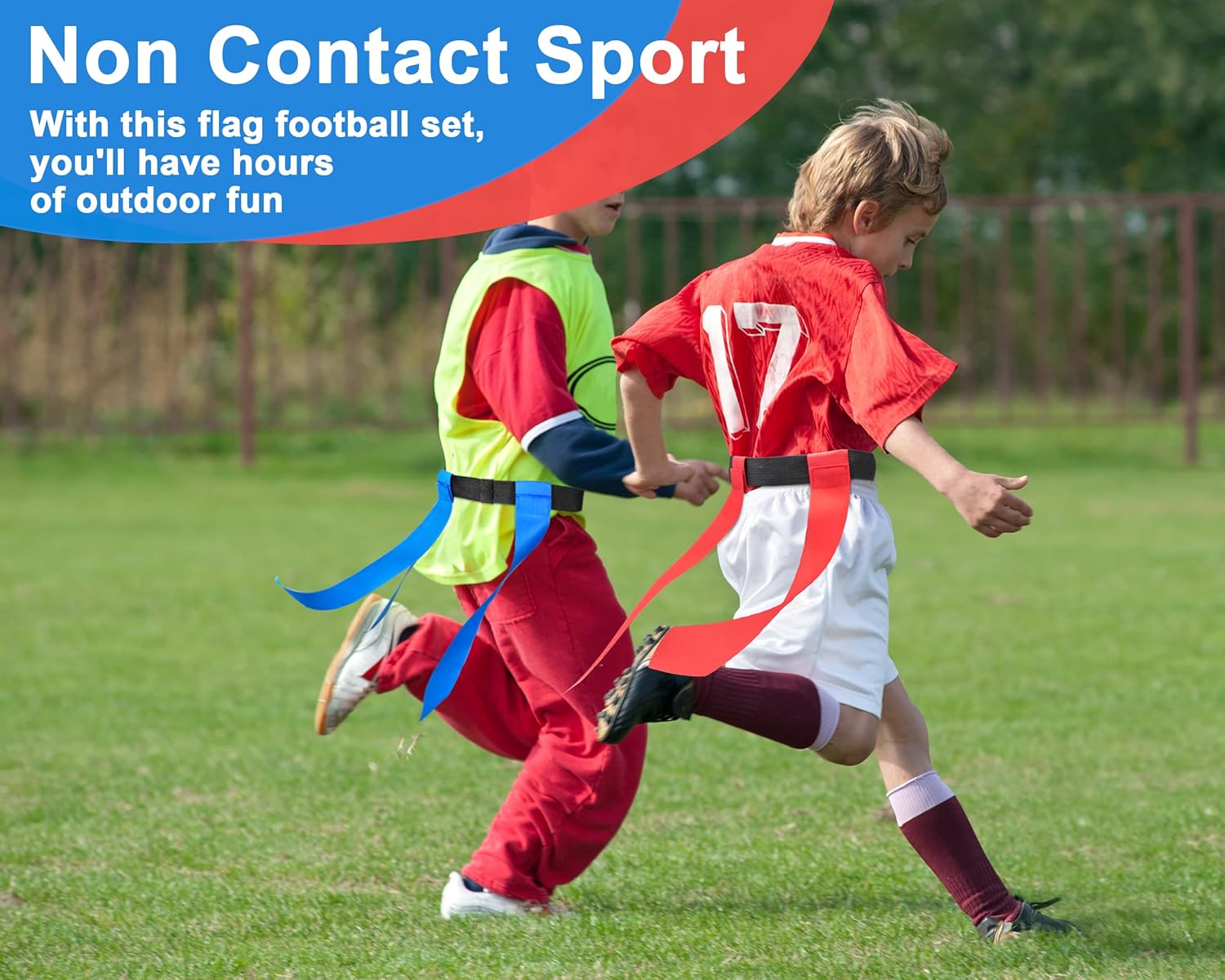 Flag Football Belts are suitable for use as kids flag football equipment and as an adult flag football set. Comprised of 28pcs 45" long adjustable football belts and 84pcs tags. Tags use hook and loop fastener for easy attachment and removal. Theses flag football sets can be suitable for off season training, can also be applied for a variety of games, such as hide and seek, pick up games, capture the flag, beach fun and more