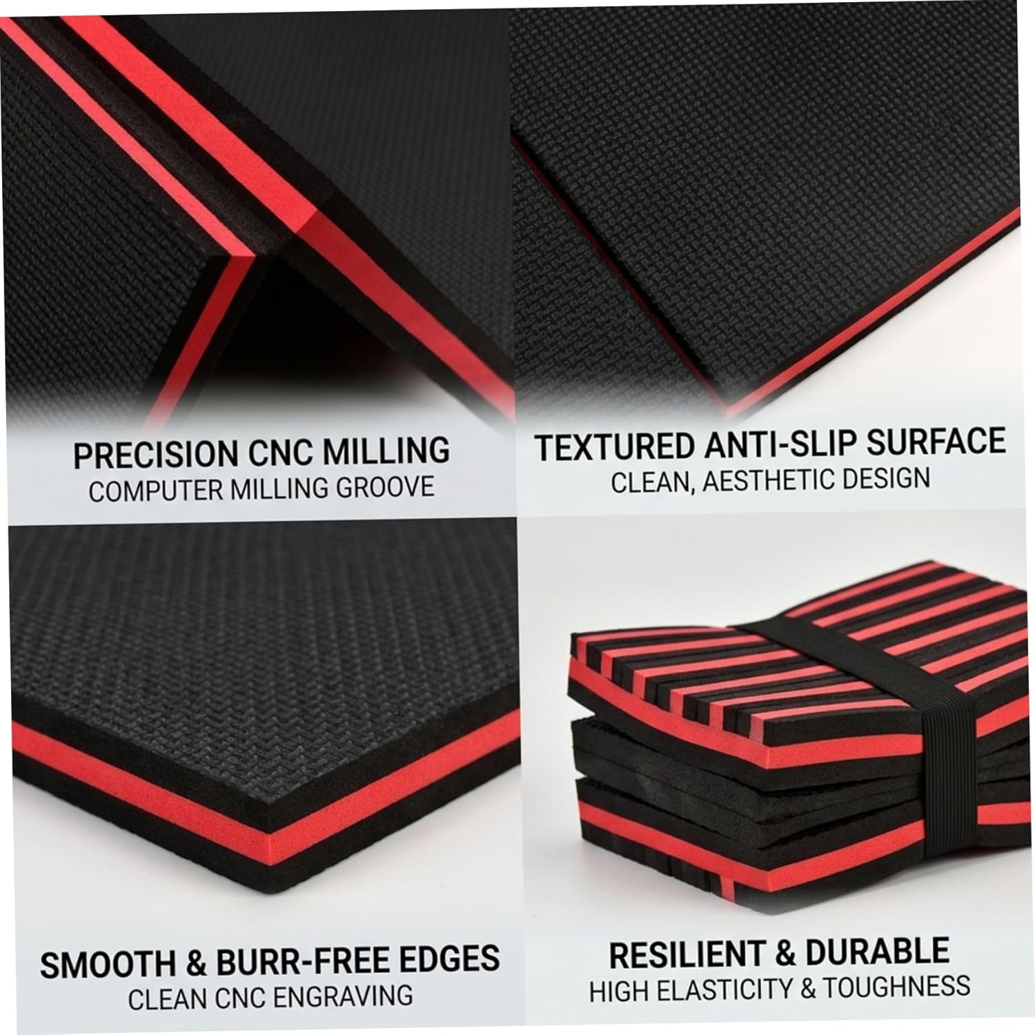 Description: Upgrade your workspace with our versatile and portable foldable mat. Designed for comfort and convenience, it's the perfect companion for demanding tasks. Crafted from resilient, eco-friendly EVA foam, this mat provides a 3cm thick cushion that provides reliable support on hard surfaces. Whether you're spending hours on car repairs, tending to your garden, or engaging in a home workout, this pad helps minimize discomfort on your knees and joints. Its sturdy construction resists common garage spills and is built to withstand regular use. We designed this mechanic mat with portability in mind. It easily folds into a compact bundle secured by its attached strap, and the integrated handle makes transportation simple. Take it from the garage to the backyard, or store it away without taking up valuable space. The smooth, non-absorbent surface means cleaning is hassle-free-most dirt and spills wipe away quickly with a damp cloth. Use this multi-purpose work mat as a kneeling pad for maintenance tasks, a protective layer for your floor during projects, or a comfortable spot for outdoor activities. It's a practical solution for mechanics, gardeners, homeowners, and DIY enthusiasts seeking a sturdy, easy-to-carry comfort mat. Features:. -Color: Black and Red. -Material: Eco-friendly EVA. -Size: Unfold Size 114.5x40 cm/45.08x15.75 inch. Fold Size 19x40x16 cm/7.48x15.75x6.30 inch. Note:Manual measurement, please allow slight errors on size.The colors may exist slight difference due to different screens. Package Including 1 * Foldable Mat
