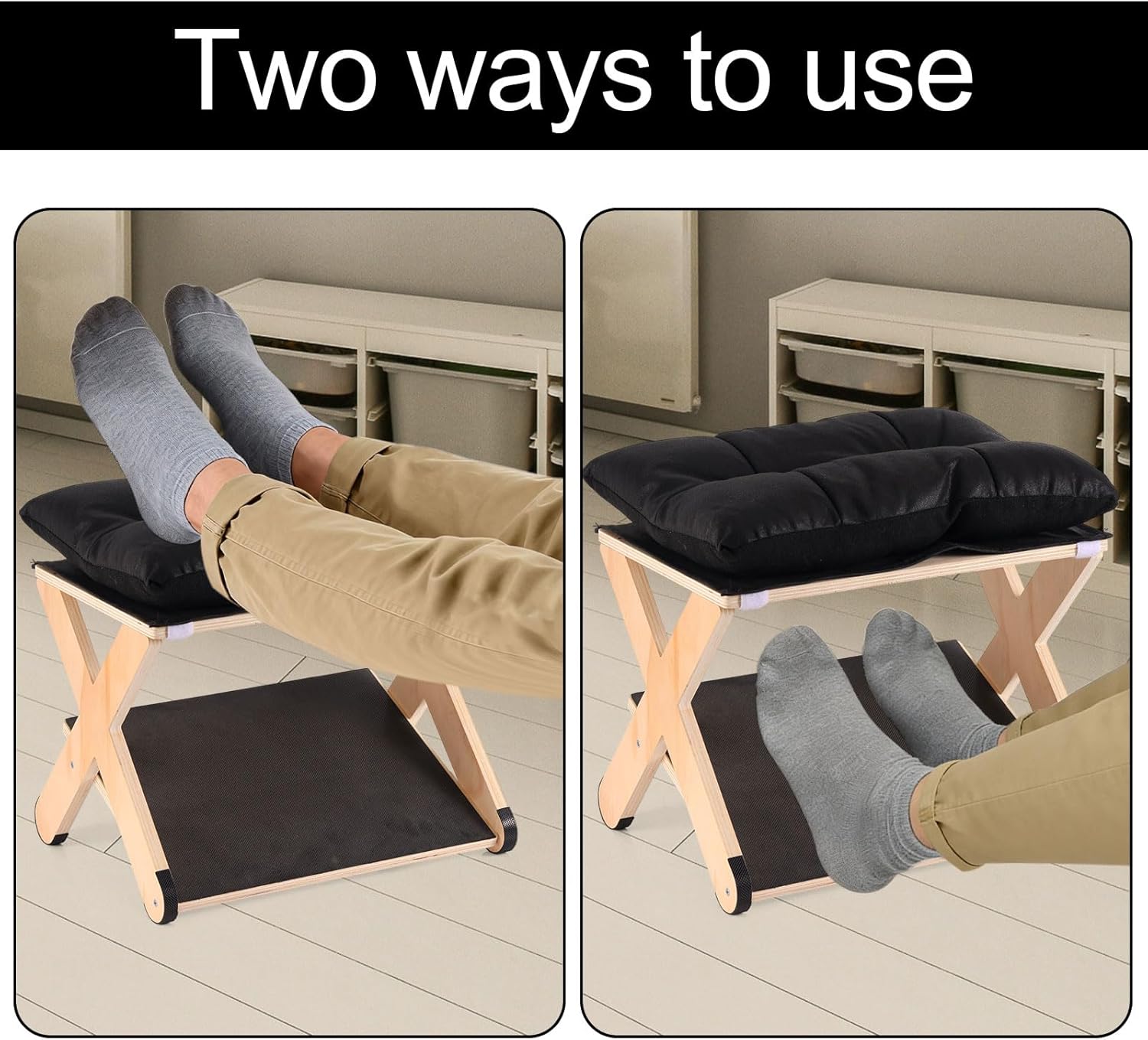 Specification: Color: wood color, black Material: wood, cotton, technical fabric Product Size: as shown in the picture Package details: 1 x foot rest for under desk 9 x screws 1 x screwdriver 1 x manual Note: Due to manual measurement, the size and weight may have a certain error. Due to the difference between different monitors, there may be a slight color difference existed.