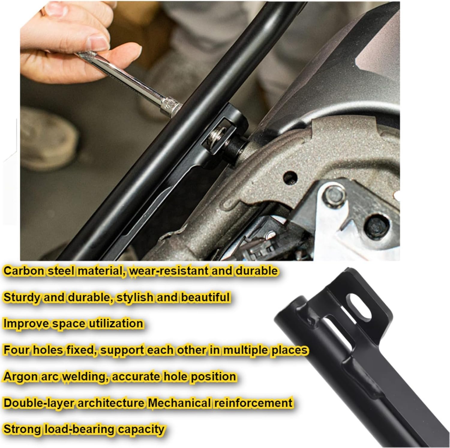 *You can place some small items, such as cycling backpacks, helmets, etc. For riders for daily rides or short distance travel, the rear rack provides additional space to carry the necessary items. *The rear rack provides basic support structure for installing the tailbox. The tailbox can further increase the storage capacity of your motorcycle, allowing you to store more items, such as maintenance tools, spare clothing and more. Additionally, after installing the tailbox, you can better store and protect the item to prevent loss or damage during the cycling process *If you need to carry irregular or large items, the rear rack can be used as a fixed point. For example, you can carry small camping equipment (such as folding chairs, sleeping bags) and secure these items to the backshelf using ropes and other tools to ensure the stability of the items during the cycling process. It affects cycling safety.