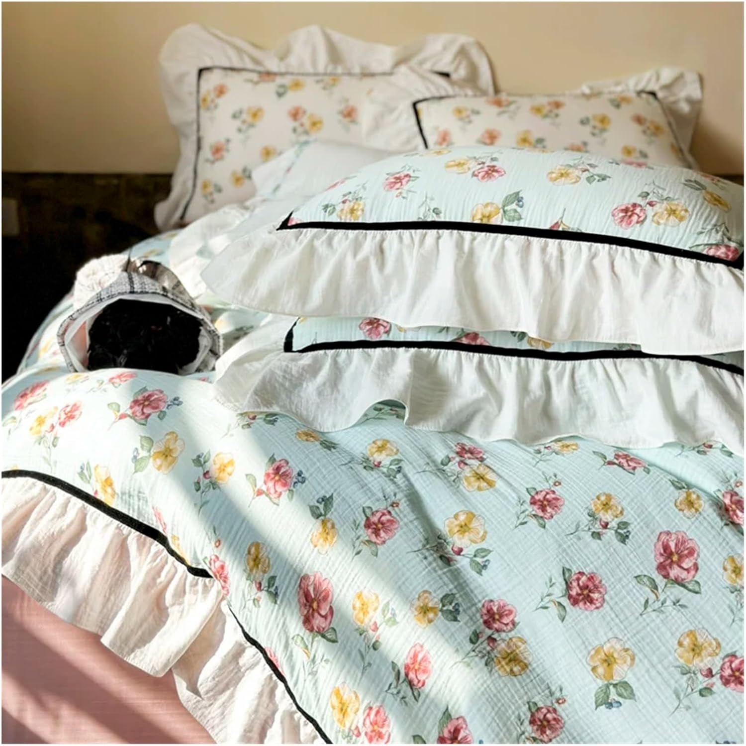 Flat sheet styleQueen Size 4pcs 1 piece Duvet Cover: 200*230cm(79*91inches)1 piece Bedsheet: 245*250(96*98inches)2 pieces Pillowcases:48*74cm(19*30inches)King Size 4pcs 1 piece Duvet Cover: 220*240cm(87*94inches)1 piece Bedsheet: 245*270(96*106inches)2 pieces Pillowcases:48*74cm(19*30inches)1 cm=0.3937008 inches