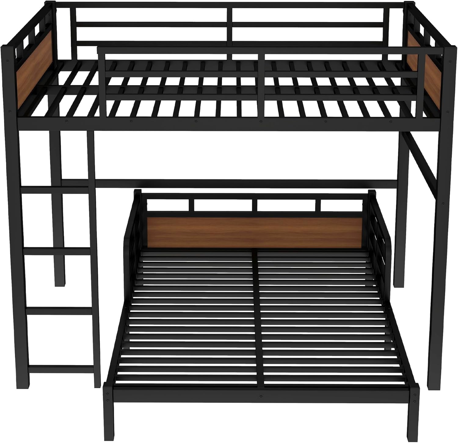 Black + Walnut Full XL Bunk Bed – Separable DesignKey Features:🔄 Separable DesignSplits into two bedsFlexible room placement🛏️ Dual Full XLSpacious sleeping capacityTwo large bed configuration🛡️ Safety GuardrailsComplete protectionSecure upper bunk🔇 Quiet SystemUpgraded slat designMinimized noise⚫ Black + WalnutTwo-tone finishDurable metal constructionWhy Choose This Bed?✔ Separable design flexibility✔ Dual Full XL capacity✔ Complete safety features✔ Space-saving solutionPerfect For:→ Studio apartments→ Shared bedrooms→ Flexible spaces→ Compact livingProduct Specifications:Color: WalnutSize: Full XL over Full XLMaterial: Metal+MDFOverall Product Dimension: 82.7"L*59.1"W*59.1"H / 82.7"L*55.5"W*19.1"HOverall Product Weight: 118.61LBSRecommend Mattress Thickness: 6'' for Upper Bed / 8'' for Bottom BedNumber of Package: 2Level of Assembly: Full Assembly NeededEligible for Hardware Packs: YesWeight Capacity: Upper Bed: 350LBS / Bottom Bed: 500LBS
