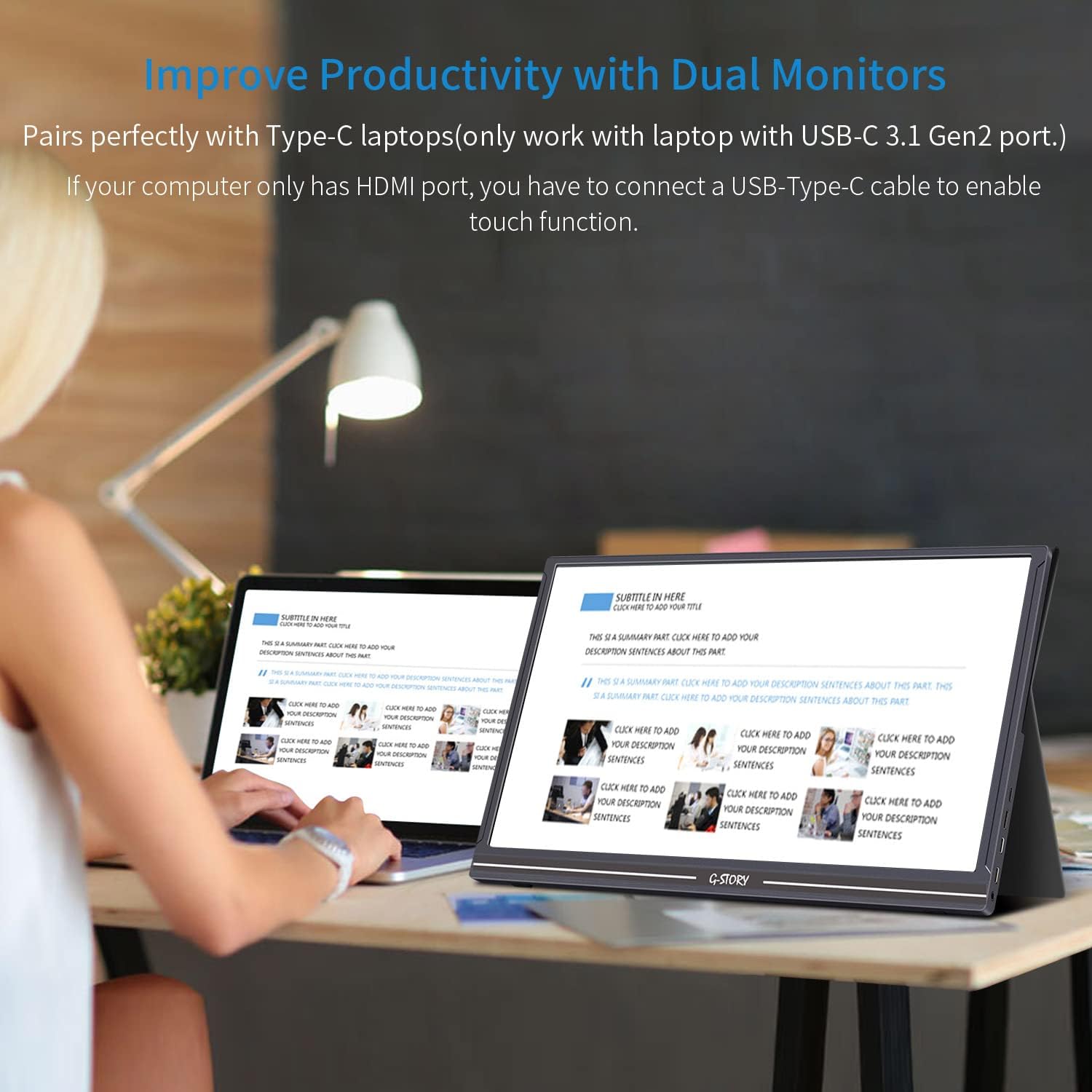 G-STORY 15.6 inch Touchscreen Portable Monitor 1080P Full HD IPS Display USB-C Gaming Monitor with HDR/FreeSync/Speakers/Mini HDMI for PS5 PS4 Xbox Series NS Laptop PC