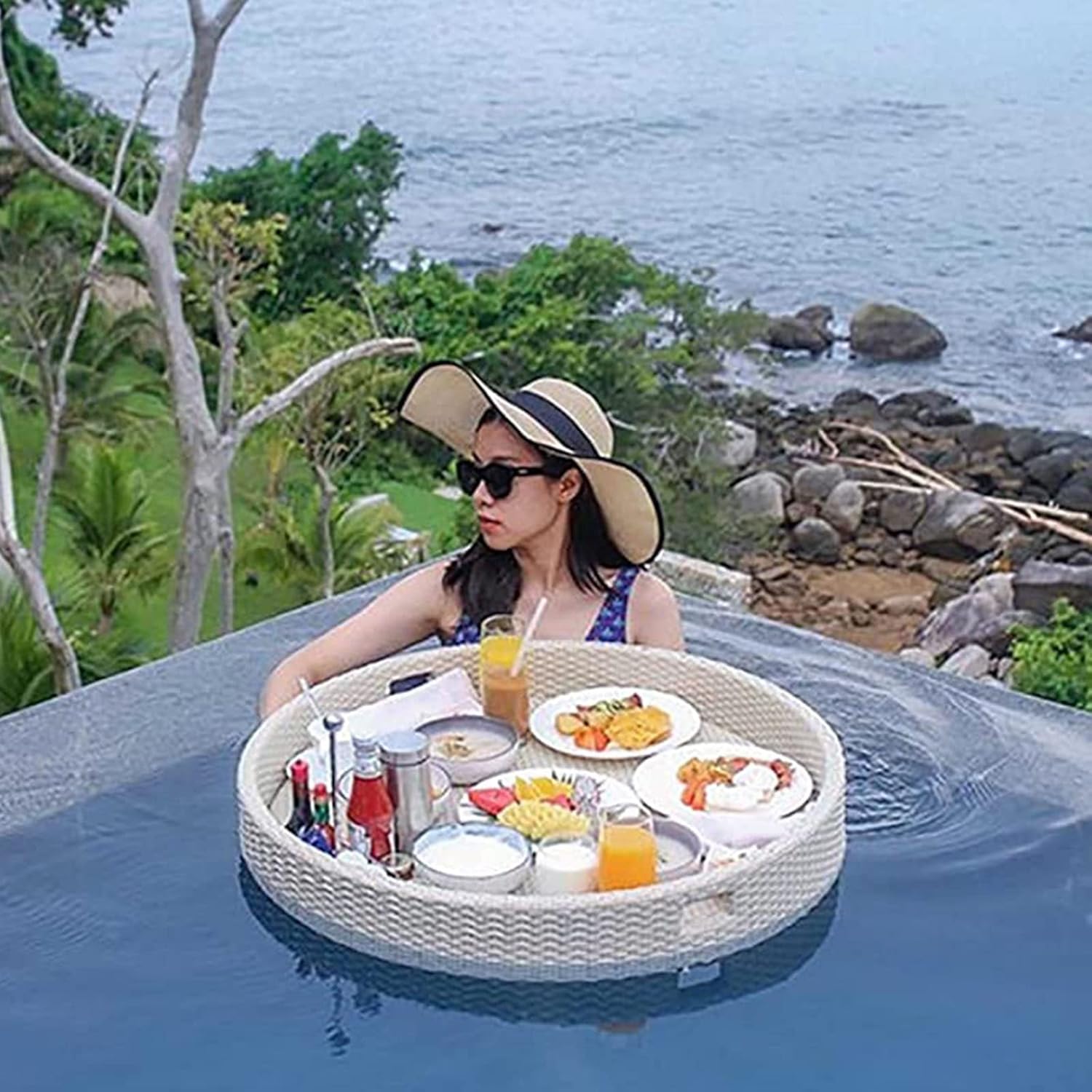 Welcome to my store "" glad to serve you! Why we recommended it to you If you are planning a pool party, a weekend beach holiday or just want to enjoy a quiet relaxing time at the spa, this floating drinking cooler food tray is perfect for you. Feature: ?Enjoy a floating breakfast on your pool lounger, or serve drinks and appetizers to your friends at your next pool party or sandbar boat gathering. ?Whether it's in the pool, lake, beach, or river, we know you'll love the incredible quality and versatility of our Bali pool floats! Specification: Name: Floating Serving Trays Table,rattan dinner plate Color: white, black, brown, apricot Panel material: aluminum alloy, PE rattan Weight: about 5kg Style: simple and modern Additional features: multifunction Furniture structure: frame structure Features: environmentally friendly and healthy, not easy to deform, strong air permeability Frame durability: weather resistant, waterproof, UV resistant, rust resistant Product use: daily dinner, pool party, wedding photography. Product Care: Clean with warm, soapy water Size: 80 x 80 x 20 cm (31.4 x 31.4 x 7.87 inches) Notice: Only sell the product itself, not other decorations. Due to manual measurement, there may be an error of 1-2mm in the product size. Due to differences in light, environment, monitor, etc., it is normal that there is a certain color difference between the product and the picture. If you have any questions or concerns, please contact us! We will reply you within 24 hours!