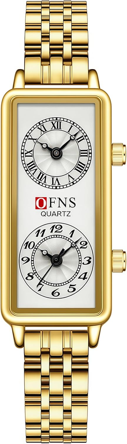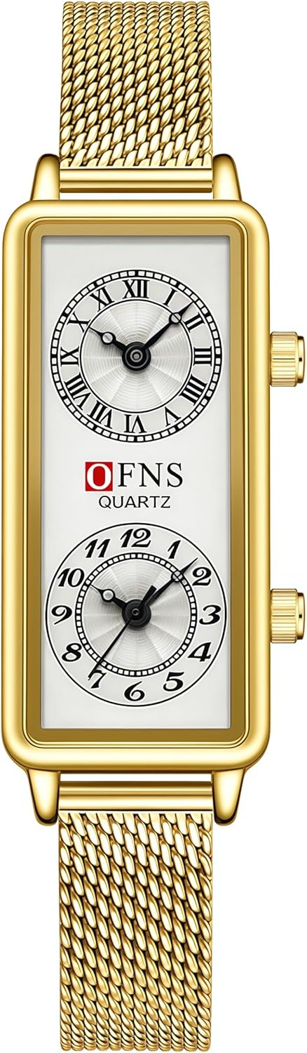 Fashionable Women's Quartz Watch, Rectangular Dial with Dual Time Zones, 30m Water Resistant,available in multiple colors and strap options Battery Size: SR626SW Battery Type: coin cell Battery Capacity: Typically around 25 mAh