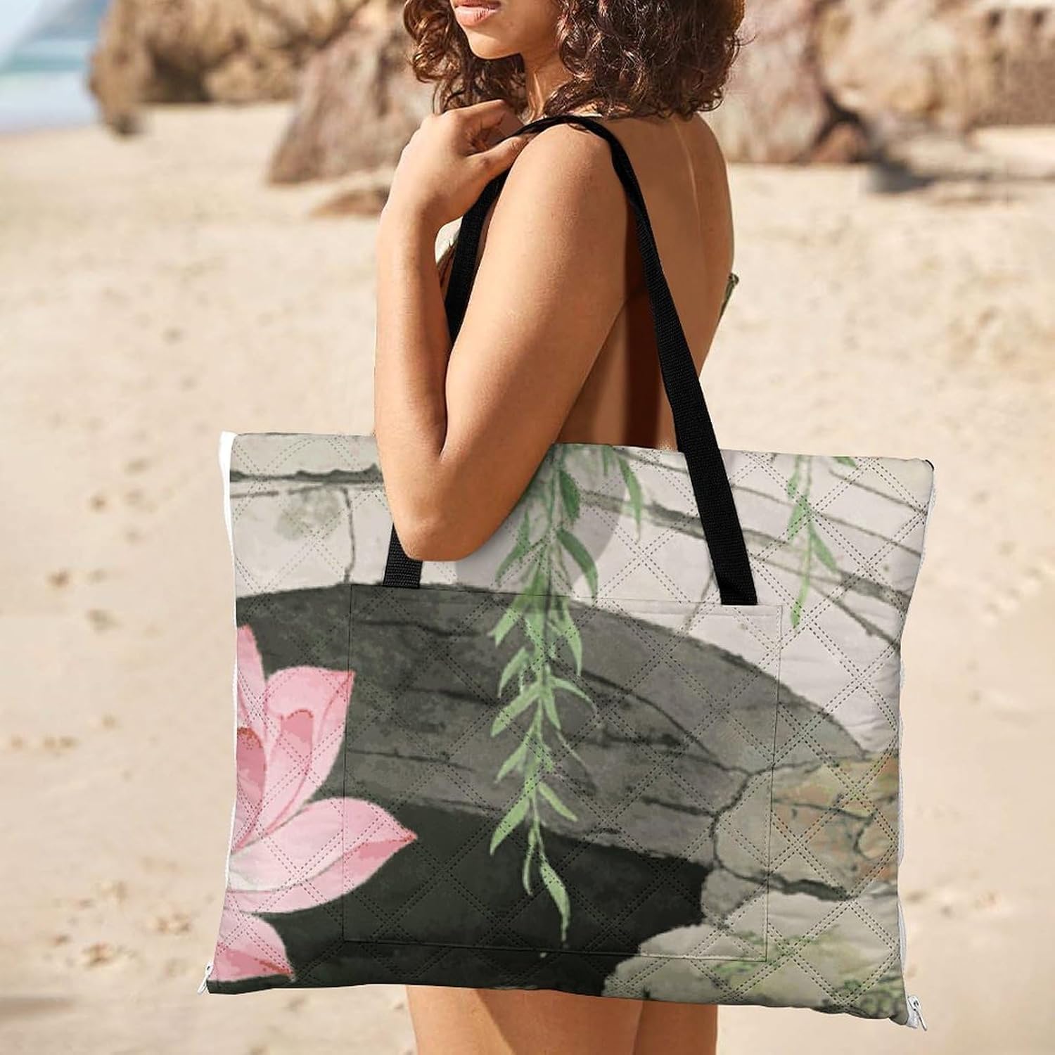 The picnic blanket ,we've only used the highest quality materials, so every picnic is an experience .The underside lining is very sturdy and therefore suitable for every surface. No more worrying about dirty or wet bottoms when you are sitting on damp grass. The Green Pink Lotus blanket protects you from water, dust and dirt.A large capacity bag and a picnic blanket, 2in1. It has a large capacity and one bag can hold everything you need for going out. You choose the place you want to lie down, and this bag can be turned into a comfortable picnic blanket in seconds also it can fold into tote bag, which is waterproof, sand-proof and wear-resistant.Therefor,you can take it to nearby parks, campuses, beaches or lawn, anywhere you want to lie down.