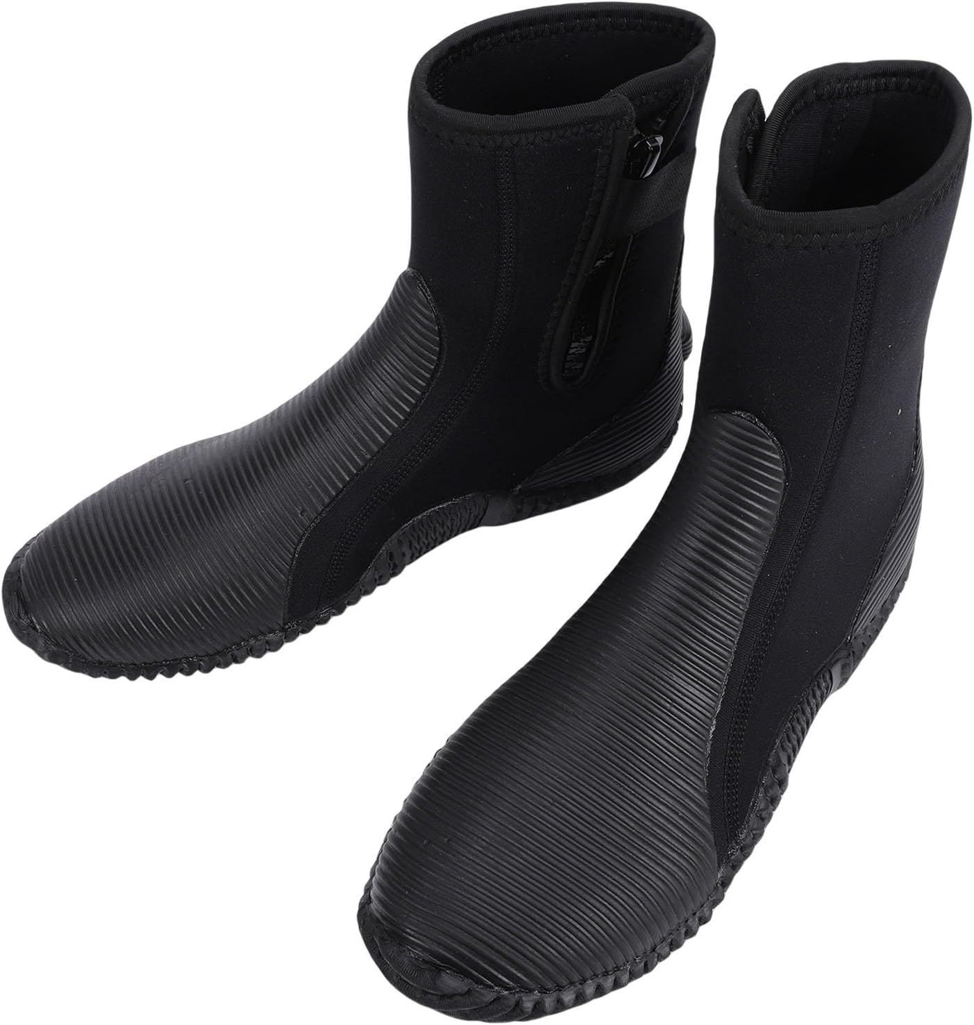 [High Performance Protection]Constructed from 5mm neoprene, these diving boots provide excellent warmth and flexibility for water activities. [Non-Slip Safety]The rubber sole design ensures a firm grip on wet surfaces, making them perfect for snorkeling and surfing. [Comfortable Fit]With a high-top design, these unisex diving boots offer adjustable support, ideal for both men and women. [Durable Design]Reinforced stitching enhances the longevity of the boots, designed for rugged water conditions and frequent use. [Versatile Usage]Perfect for various water sports including surfing, snorkeling, and stream tracing, suitable for adventurous enthusiasts. Item Type: Diver Boots Material: Neoprene and rubber Thickness: Approx. 5mm / 0.2in 2 x Diving Boots