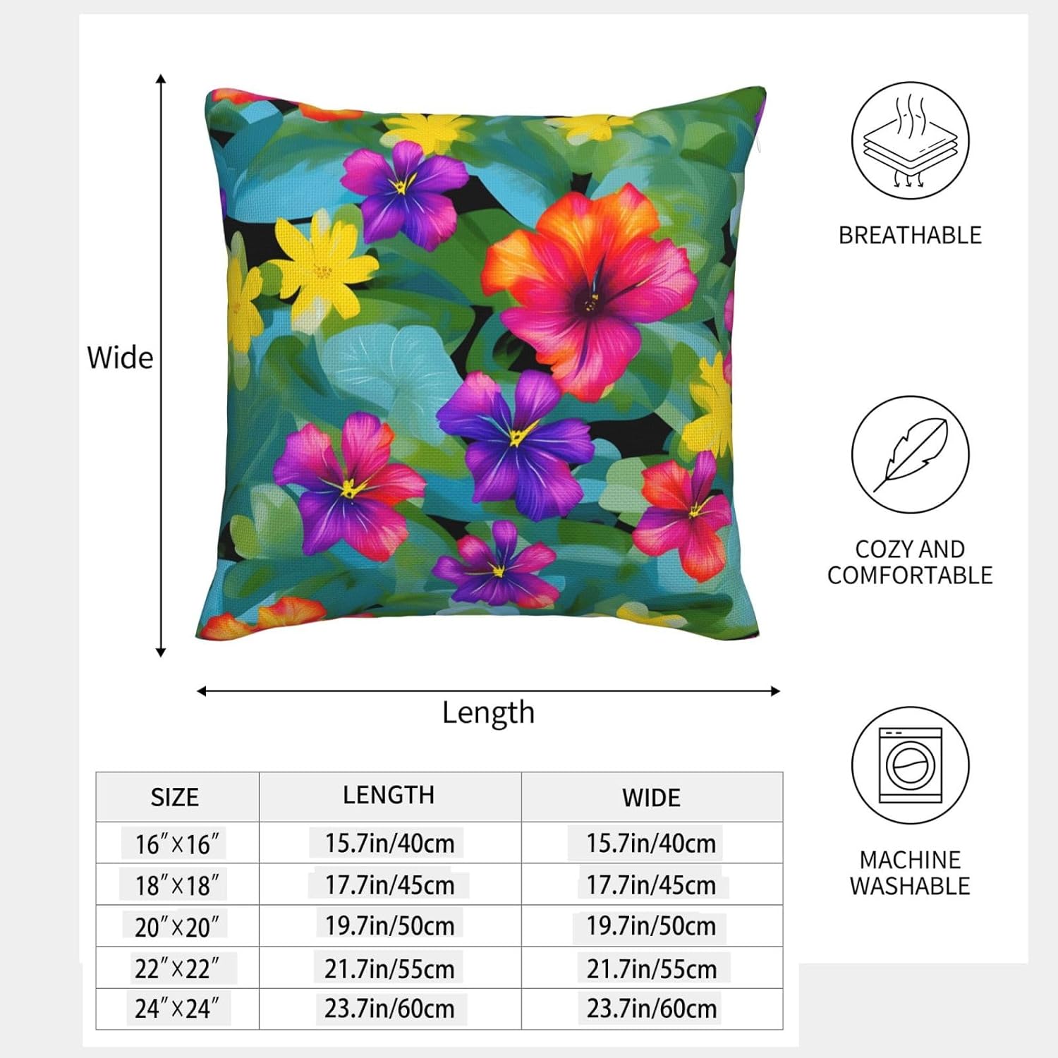 • Pillowcase size : Hawaiian Colorful Flower print Imitation linen pillowcase, 5 sizes to choose from. 15.7 x 15.7 inches=40x 40cm, 17.7 x 17.7 inches=45x 45cm, 19.7 x 19.7 inches=50x 50cm, 21.7 x 21.7 inches=55x 55cm, 23.7 x 23.7=60x 60cm