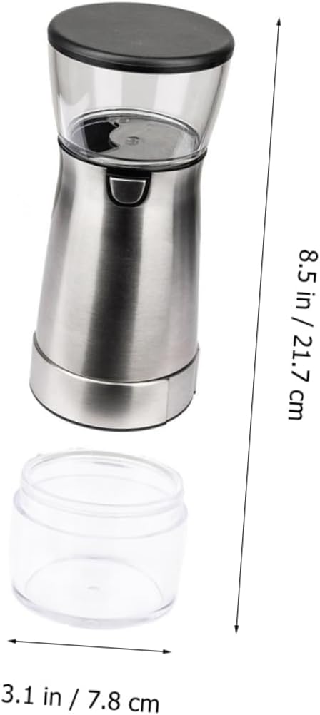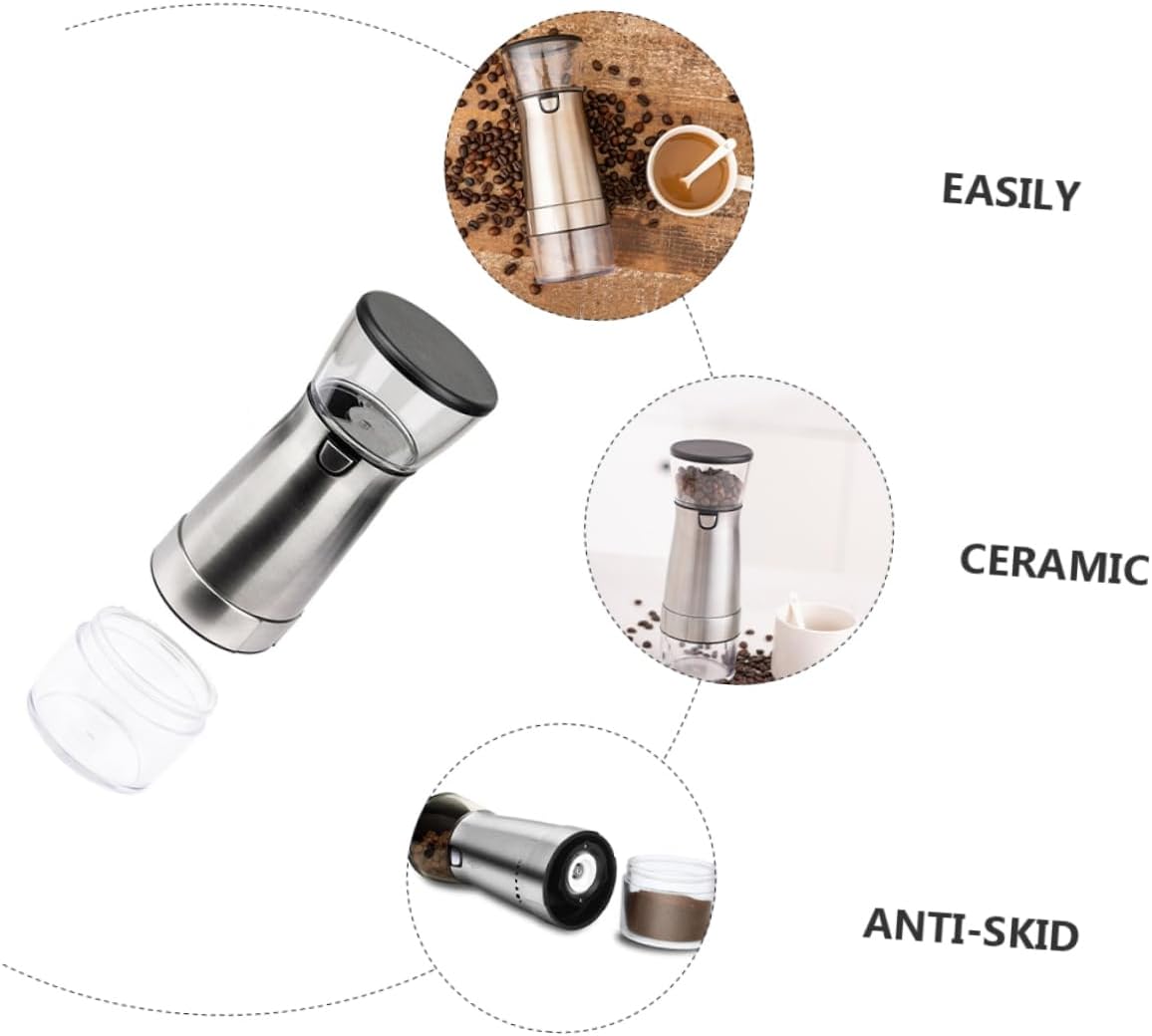Package List 1 x Electric Coffee Bean Features - Material: PET, PP, ABS, ceramic core, stainless steel mini coffee grinder -Product Info:Coffee bean grinder - Size: About 21.70X7.80X7.80cm/8.53X3.07X3.07in electric coffee grinder for beans - Color: Silver small electric coffee grinder - It offers fast grinding, the powder of bean is uniform electric coffee grinders. - USB charging, built-in large capacity battery, one button to bean grinding machine. - Ceramic grinding core, wear - resistant and without deformation or jam small coffee grinder. - The bottom is designed with silica gel pad for anti-skid function coffee beans grinder. - Easily rotate the bottom and adjust the grinding thickness of gear coffee bean grinder.Goods Descriptionelectric coffee grinders This electric coffee has specially been designed for people who like drinking coffee.coffee bean grinders for home use The coffee is a perfect accessory for the coffee enthusiast.mini coffee grinder This item can be a good choice for you.coffee bean grinder Made of for and practical use