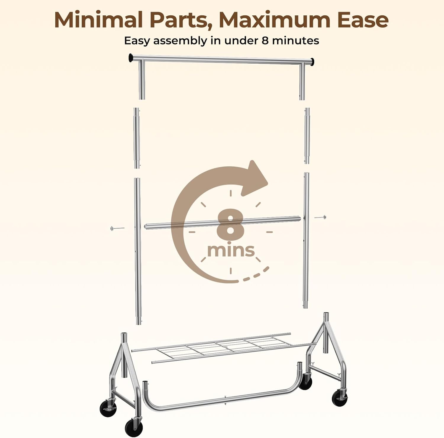| Additional Features | 2 Tier, Double Rods, Heavy Duty, Lockable Wheel, Space Saver |
