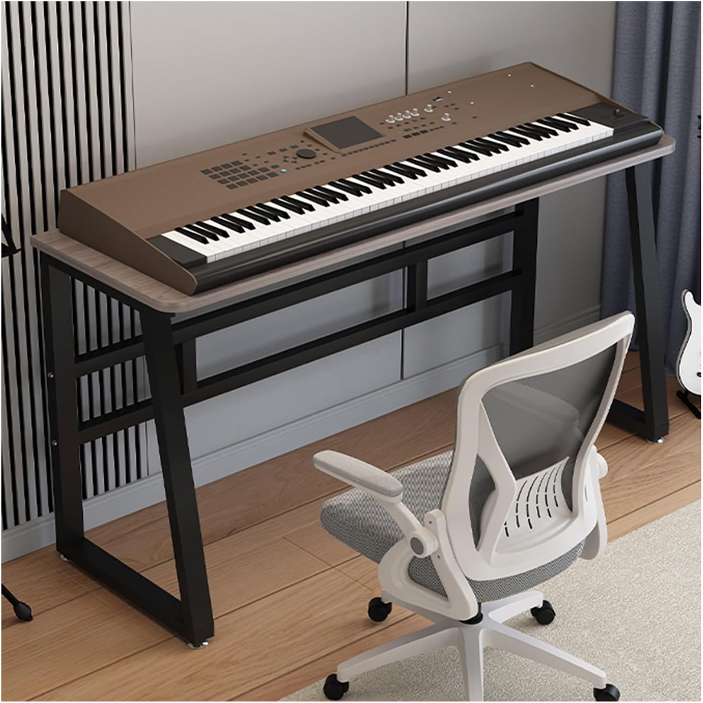 Due to the large size of the keyboard, it is usually inconvenient to play. However, with this keyboard stand, everything becomes a breeze. Whether you are on stage or playing in a comfortable room, you can play comfortably with the keyboard stand! Specially designed to not hinder you from playing with the pedal, it is the best way to travel and take your music with you. Specifications: Product Name: Electronic Piano Stand Color: Black Material: Solid wood board, metal shelf Dimensions: 47.2/51.1 x 15.7 x 26.3 inches Load capacity: 110 lbs Package Contents: 1 x Keyboard Stand Tips: 1. Due to manual measurement, there is an error of 1-2 cm with the actual object. 2. There may be a slight color difference between the recording resolution and the display, please refer to the actual color.