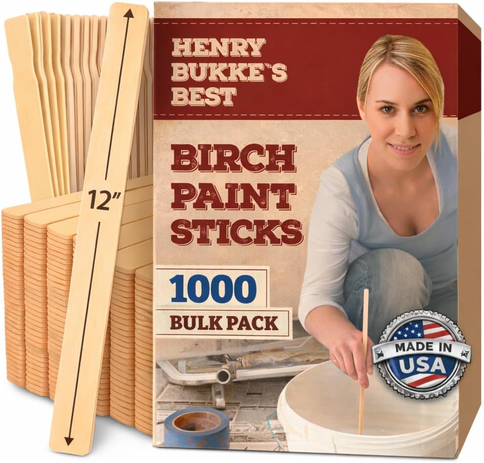 Henry Bukke's Best Professional Birch Paint Stir Sticks - For those who require better paint stirring tools. A question we get often is why Henry Bukke's Best birch paint stirrers are a little more money *per stick* than some of the other brands. There are a couple of reasons. One reason is -a lot more goes into these birch paint sticks. These are not ordinary run-of-the-mill stirrers and they are not for everyone. The birch sticks undergo a multi-staged sanding process that renders a clean & smooth stick with minimal, if any, wood dust, burrs or fuzz. This minimies the chance of your process being contaminated, or your hand being punctured by a sliver. Another reason is the birch is more expensive than basswood or pine -which is the typical wood for many other brands. Another reason these birch paint mixers are a couple cents higher *per stick* is, they are made in the USA by skilled workers with decades of experience. Many, if not most of the others come from off-shore, principally China. For all of those reasons, professionals and others who don't want to risk the outcome of their project choose not to cheap out on the tools they use. It also widens the spectrum of possible other uses for the sticks-which are discussed next. For professionals who refuse to compromise with ordinary paint stirrers, these professional-grade American birch paint stir sticks deliver industry-specific excellence: Industrial manufacturers and automotive clear-coat techs rely on our contamination-free paint stirring sticks for minimal wood dust, burrs and fuzz, resulting in precision mixing processes. Professional beauty technicians choose our ultra-smooth paint stir sticks for safe waxing applications. Fine woodworking craftsmen (and women) select our premium paint stirrers for consistent finish control. DIY crafts people find solace in our dimensions and finish which are always consistent. Are the sticks treated with anything? No, they are raw birch, kiln dried with no substances that may contaminate a process. Crafted in our USA facility by skilled union members who understand diverse professional standards. Their expertise ensures each paint stirrer meets industry-specific requirements, backing our satisfaction guarantee. Available in 9", 12" and 14" -in bulk and smaller quantities for operations where excellence is standard. See our Brand Store (link is above or below) for full selection. Select "Add to Cart" to experience professional-grade paint stir sticks that exceed your industry's demands. Quantity: 100