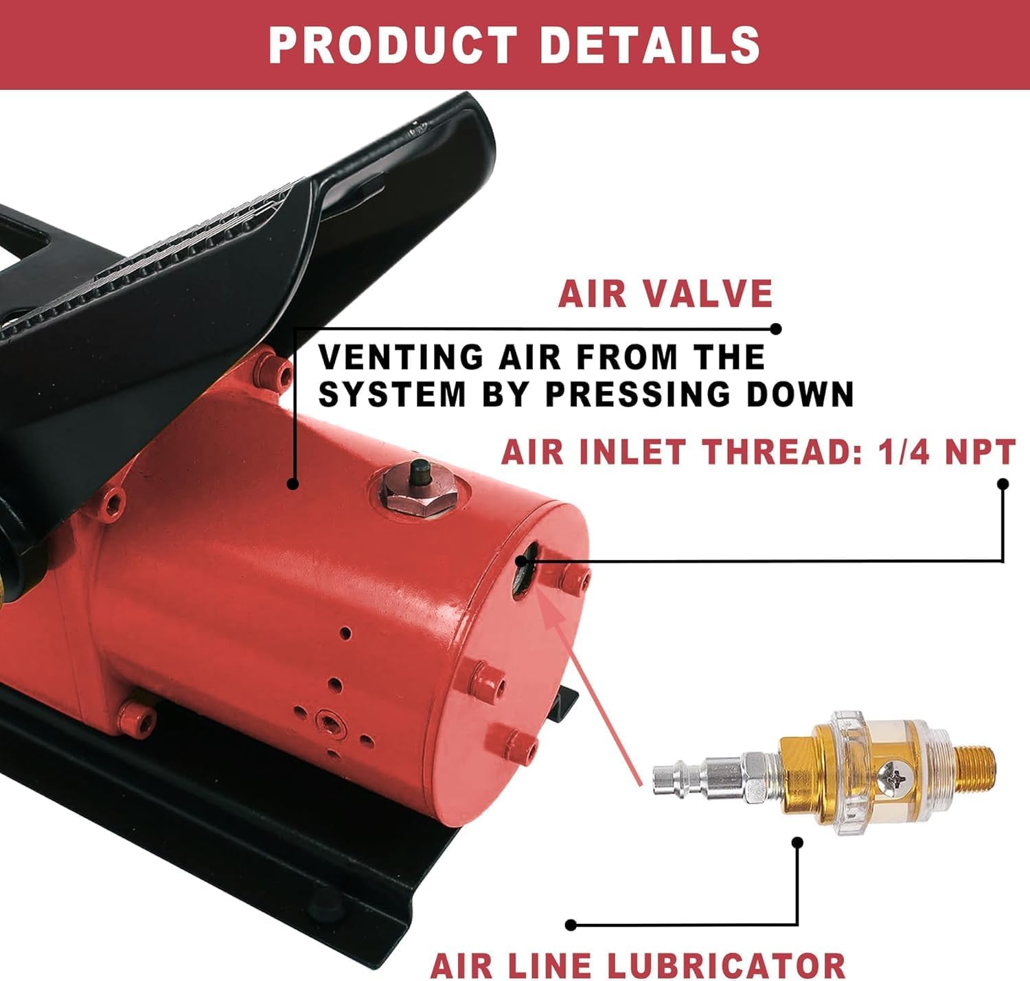 | Included Components | Air Hydraulic Pump, Air Line Lubricator Hose |