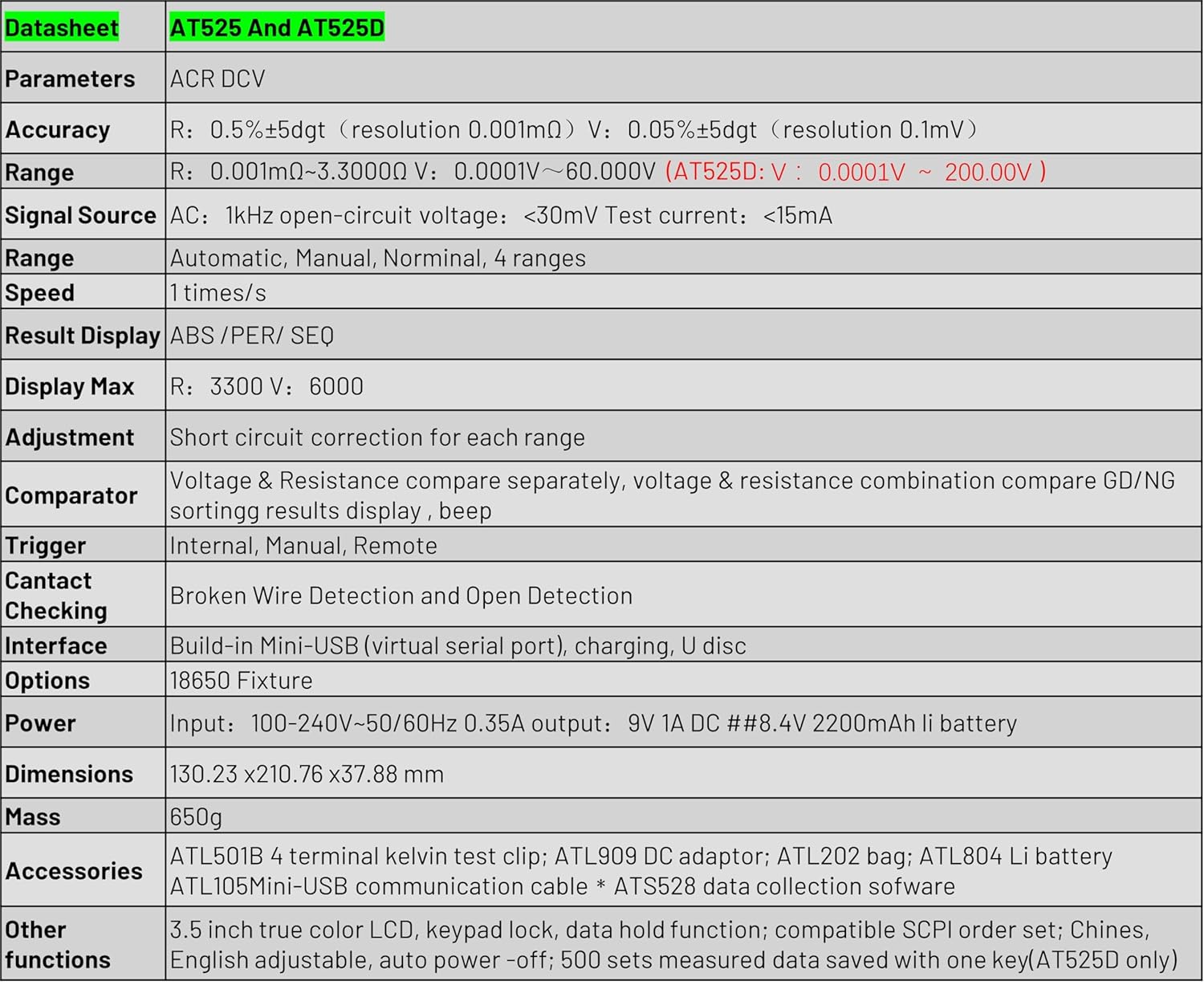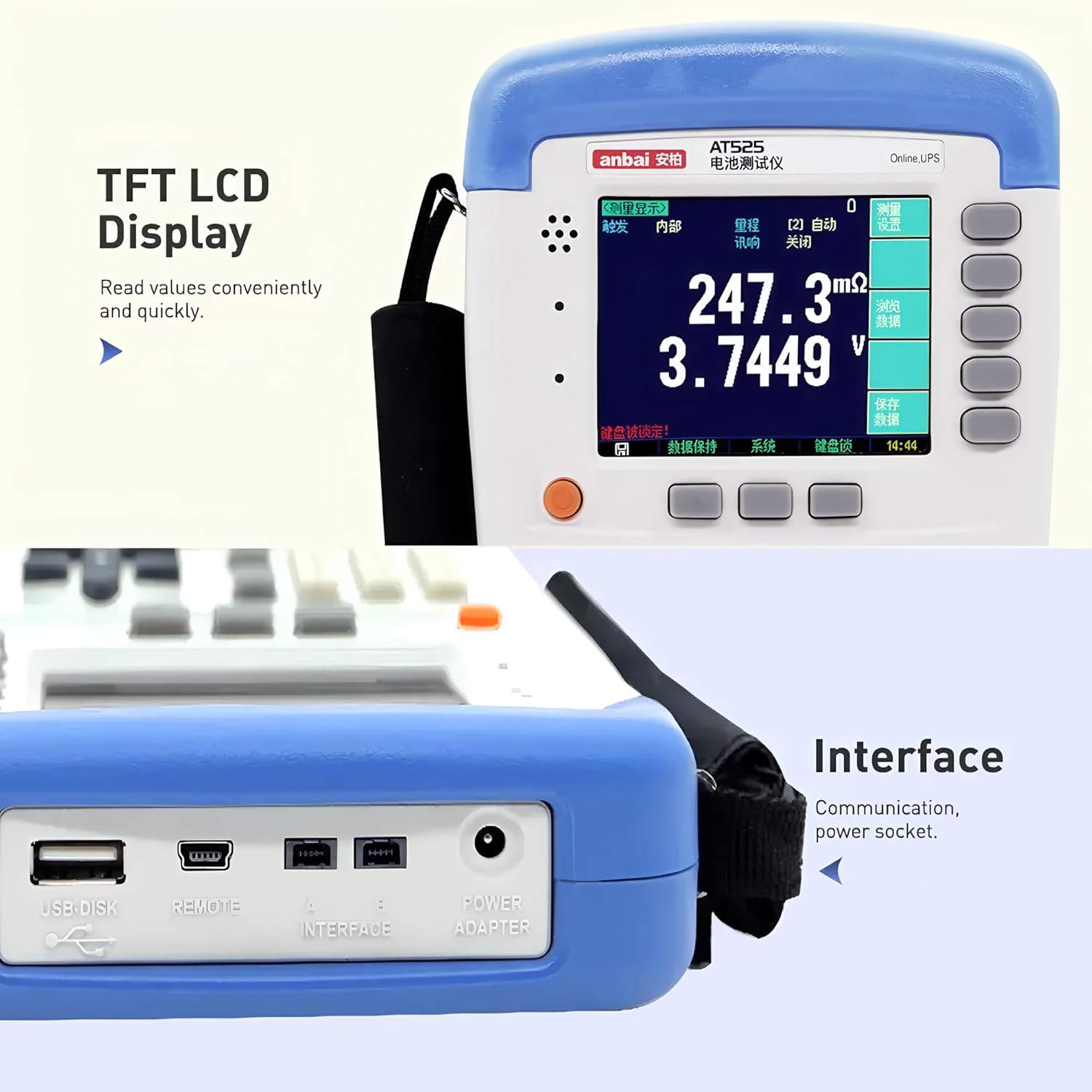i-POOK Handheld Battery Tester AT525/AT525D internal resistance tester battery AC resistance DC voltage tester 3.5 inch color TFT-LCD keypad lock data hold Build-in Mini-USB charging interface U-disc interface(AT525D)