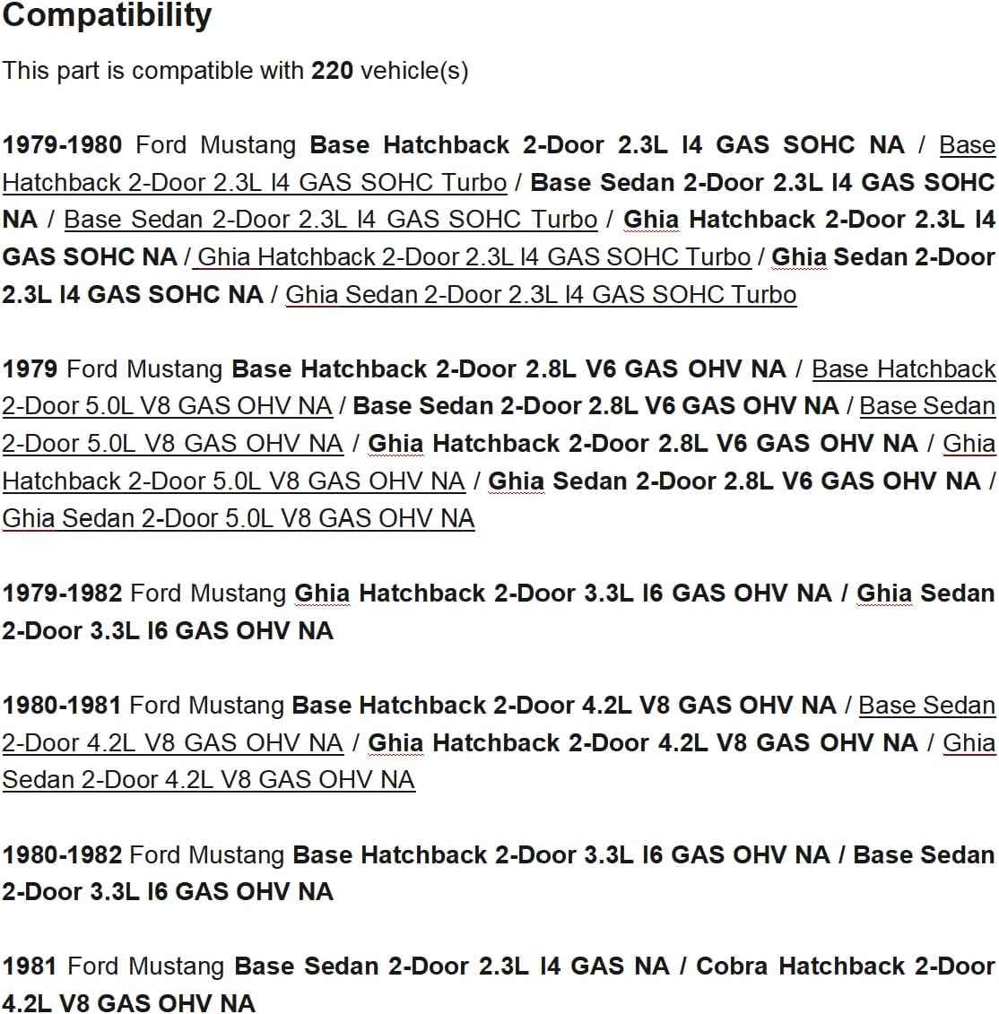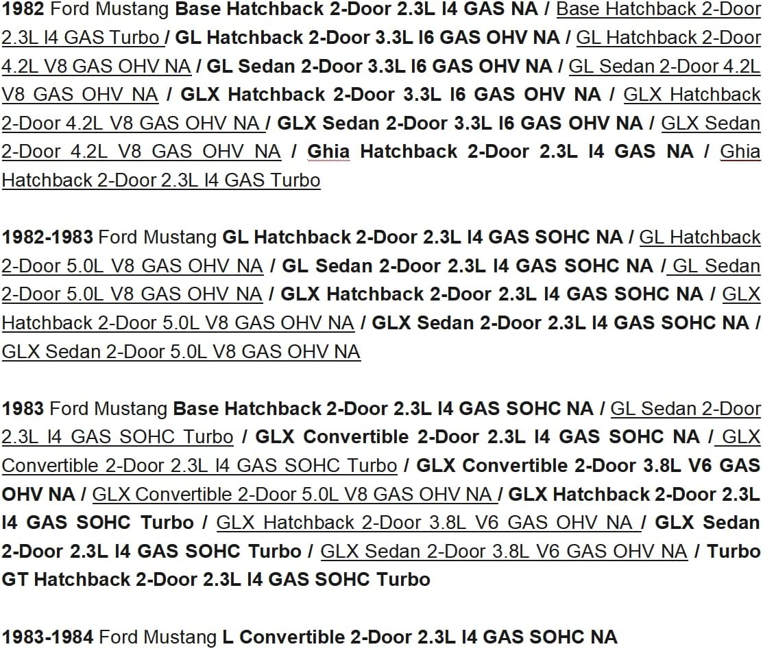 • 【Fitment & Compatibility】: Fits Ford Mustang 1979 1980 1981 1982 1983 1984 1985 1986 1987 1988 1989 1990 1991 1992 1993. Please double-check compatibility prior to purchase.