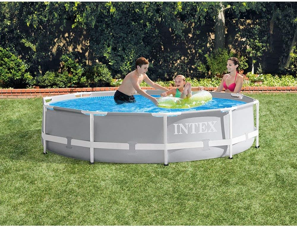 Make a splash this summer with the INTEX Prism Metal Frame Above-Ground Swimming Pool Set and Maintenance Kit. The pool's 10-foot diameter and 30-inch depth ensure that there's enough space for everyone to soak, swim, or simply float around on a lazy afternoon. Boasting sturdy construction and simple tool-free assembly, this backyard above-ground pool delivers both quality and convenience. Constructed with Super-Tough puncture-resistant 3-ply PVC sidewalls and powder-coated steel frames, the INTEX Prism Metal Frame swimming pool is designed to last season after season. An all-around band ensures that the frame legs stay secure, and the innovative T-joints allow for easy, tool-free assembly. Ready for water in 30 minutes. Equipped with a Krystal Clear 330 GPH Cartridge Filter Pump and a washable Type A filter cartridge, your frame pool’s water stays safe and crystal clear, ensuring only the most relaxing of swims throughout the entire season. Keep your pool water looking clean and clear with the INTEX Pool Maintenance Kit. Attach the vacuum to the 94-inch telescoping pole. Simply connect your garden hose and suck debris into the reusable debris bag. Then attach the surface skimmer to the pole and collect leaves and other floating particles. Easily keep your pool clean in a flash with a pool maintenance cleaning kit this summer. This is designed for 16-foot and smaller above-ground swimming pools with lower-side walls. The tool kit includes a 94-inch telescoping aluminum shaft for interchangeable skim net heads and vacuum heads to get the pool clean in a flash. This 2-in-1 pool cleaner takes up less space than a skimmer pole and a pool vacuum, freeing up space wherever you store your pool cleaners. Make your backyard the ultimate summer hotspot with the Prism Metal Frame Above-Ground Pool Set from INTEX. Note: Requires flat, level ground for proper installation. Disclaimer: Stay cool and compliant this summer! Please check your HOA rules before splashing out