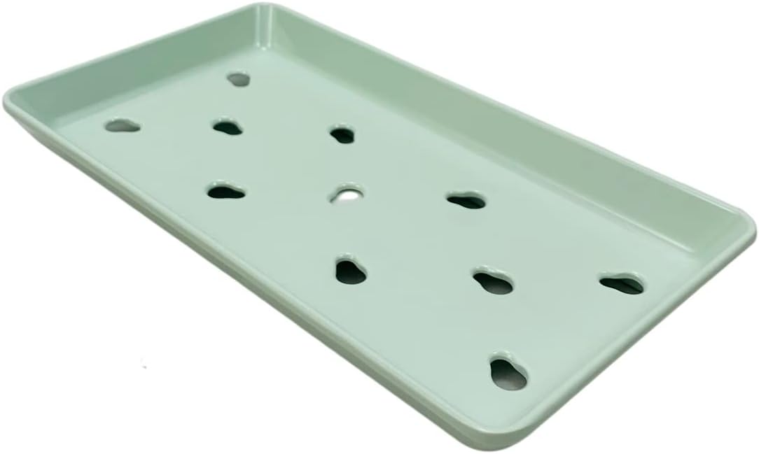 Present sushi and sashimi with professional precision using this set of 16 Sushi Neta Case Plates, specially designed for refrigerated sushi display cases. Each plate is constructed from durable melamine in a light green finish and features integrated drip holes that help drain excess moisture, preserving the freshness and quality of raw fish. Measuring 8.75 inches long by 5 inches wide and 1 inch high, these trays fit seamlessly into sushi cases and offer an ideal solution for high-volume restaurants, sushi bars, and catering services. The plates are dishwasher safe, stain-resistant, and built for long-term, repeated use—making them an essential component in any sushi chef’s toolkit.