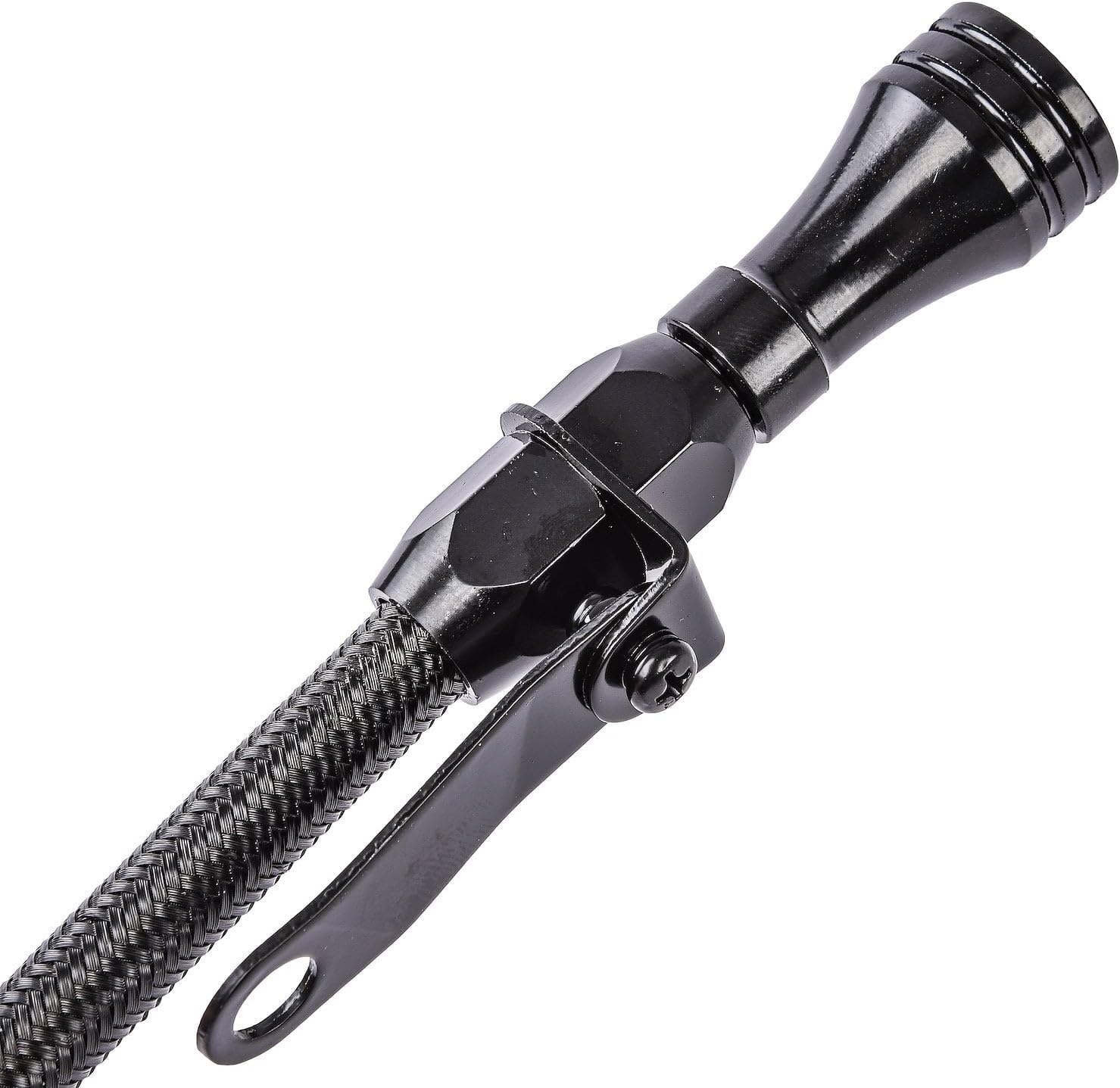 Flexible Engine Oil DipstickLS Series EnginesBlack Billet Aluminum HandleBlack Stainless Steel Braided HoseDouble O-Ring Tube SealFluid Level MarkingsCan be ModifiedPush-In Style JEGS 52352 Chevy Flexible Engine Oil Dipstick fits 1997 and later GM LS engines. Featuring a black billet aluminum handle with a braided stainless hose, this dipstick is 20 3/8 in. long. Includes funnel adapter for easy fluid filling.Click Here for Dimensions