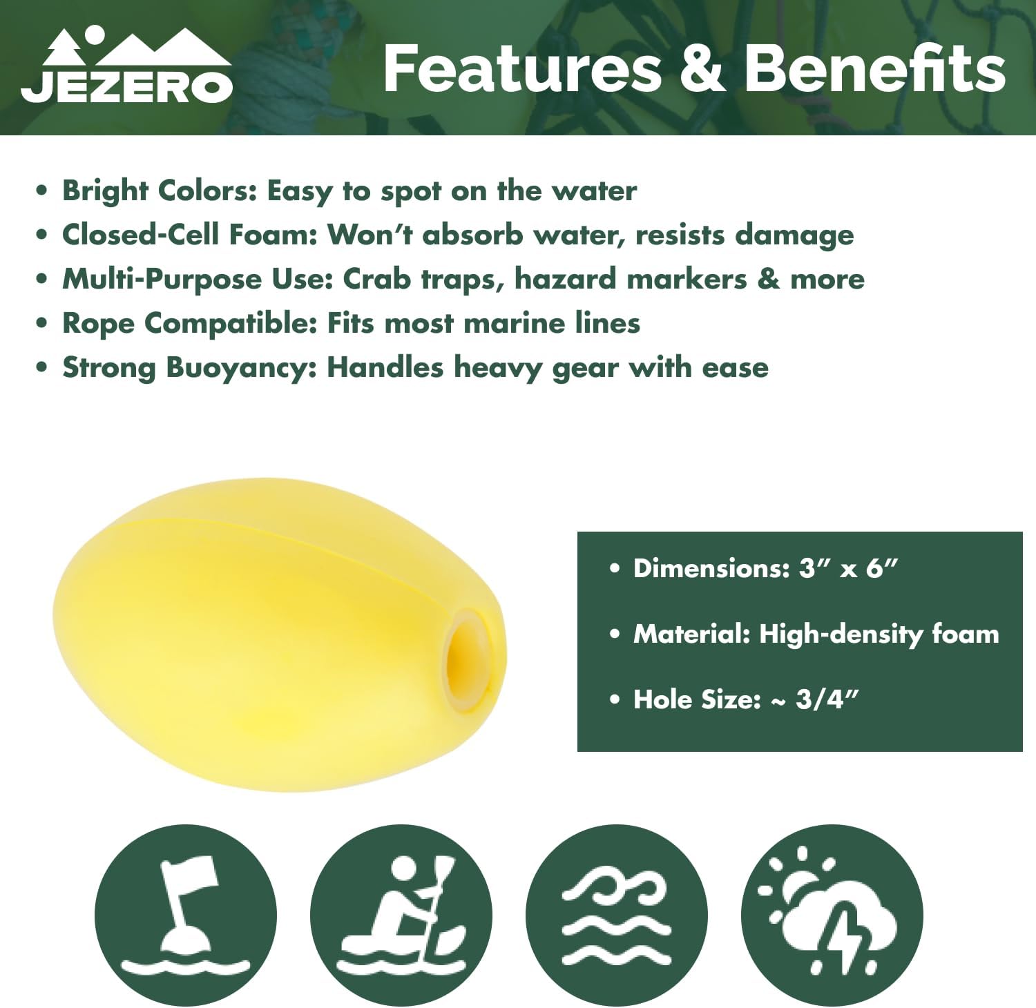 • VERSATILE USE. Ideal for trail markers, crawfish floats, crab trap floats, winter buoys, buoys for boats, outrigger floats, buoys for ropes, anchor float buoys, floating marker buoys, lobster cage floats, buoys for lakes, tow rope buoys, ski rope floats, and more!