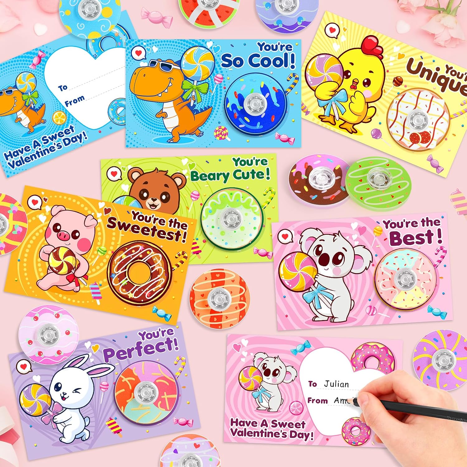 | Included Components | 30 Donut Fidget Spinners, 30 Valentines Cards |