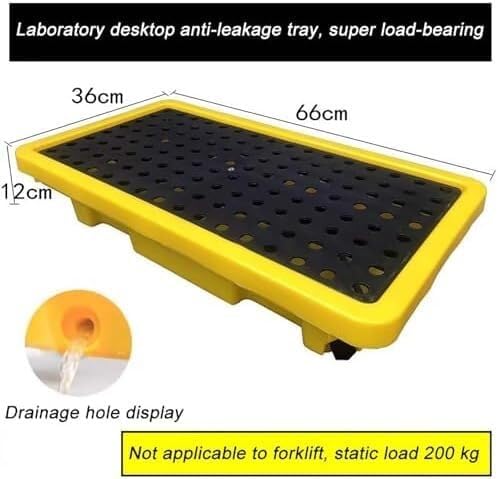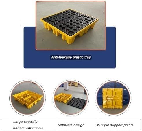 Introducing our versatile spill containment platform, specifically designed for the safe storage of oil, paint, chemical, and water drums. This robust solution is ideal for various applications, including workshops, factories, warehouses, laboratories, and farms, ensuring safety and compliance in any workplace. Made from thickened plastic, our pallets offer increased compressive strength, making them suitable for demanding applications. Available in a range of sizes, they provide practical and convenient options to meet your storage needs. Whether you need storage space in your basement, organization for your daily shopping, or efficient handling of toys and other goods, our reusable pallets are up to the task. The innovative design allows for the combination of multiple platforms, enabling you to adapt to different application scenarios. This flexibility ensures you can tailor your solution to your specific requirements and maximize your operational efficiency. Product Details: - Name: Plastic Pallet - Material: Durable plastic - Color: Yellow and black - Features: Robust, wear-resistant, and high load-bearing capacity. Packing List: - 1 x Pallet. Note: Manual measurements may vary by 1-3 cm. Due to lighting and monitor resolution, actual colors may differ slightly from the images. Optimize your storage solutions with our pallet tray and ensure safety and order in your workplace!