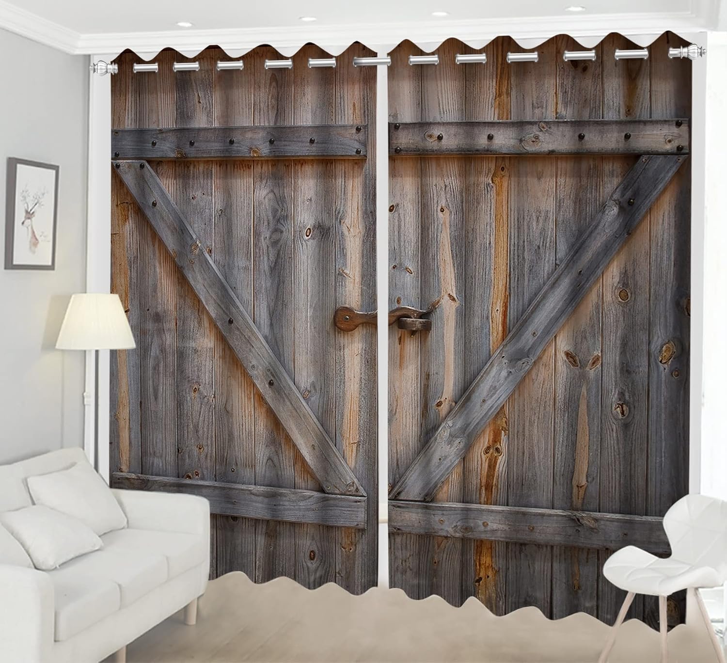 INFORMATION:Curtain Theme: Rustic CurtainsMaterial:PolyesterPackage: Set of 2 Blackout Window Curtains PanelsSize:Single Curtain Size: 42W x 96L inch, Total Size: 84W x 96L inch (213x244cm); High Quality: Made from high quality polyester tight woven,high-definition digital printing technology, environment friendly, breathable, durable, anti-wrinkle, soft to the touchFeature:1.Easy care,machine wash cold, no bleaching.2.Environment friendly, no dye substance harming healthy of your family. It’s healthier and safer to use.3.It will protect your privacy, reduce noise, and provide you with a comfortable environment.4.It is not thin or too thick, easy to install and slide.5.Vibrant colors and clear images add chic, beautiful, and stylish style to these curtains, creating a casual yet elegant atmosphere for your home.6.High-resolution pictures bring a realistic experience to your life.Multi-Function:Perfect for any room including living rooms, bedrooms, kids and dorm rooms. Matches well with various color palettes of rugs, furniture and any other home decor accessories.A perfect gift idea for your mom, dad, sister, brother, grandma, wife, husband and other beloved ones with thousands of designs.Customized:Personalized products are very popular. As manufactures of digital printed home textiles, we follow current trends and bring you the latest home fashion.Either a gift to your family, friend, relative, boyfriend or to yourself, the item should be interesting, authentic. Men, women, kids, teens, boys or girls everybody will love them!Anyone from any profession will be thrilled by the difference these curtains bring to their house decor.Notice:1.The curtains need keep distance to show the most realistic look possible.2.Since the color calibration of all computer screen is different, there may be a slight color difference.Hardware and curtain rod are not included.