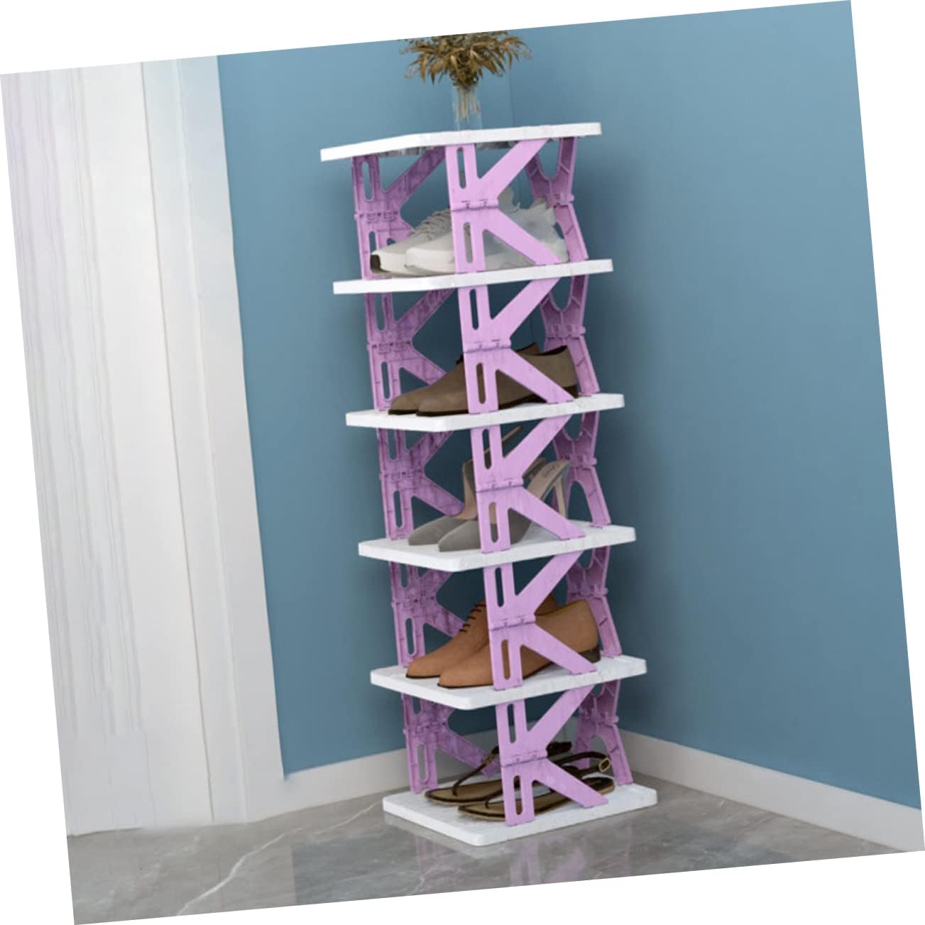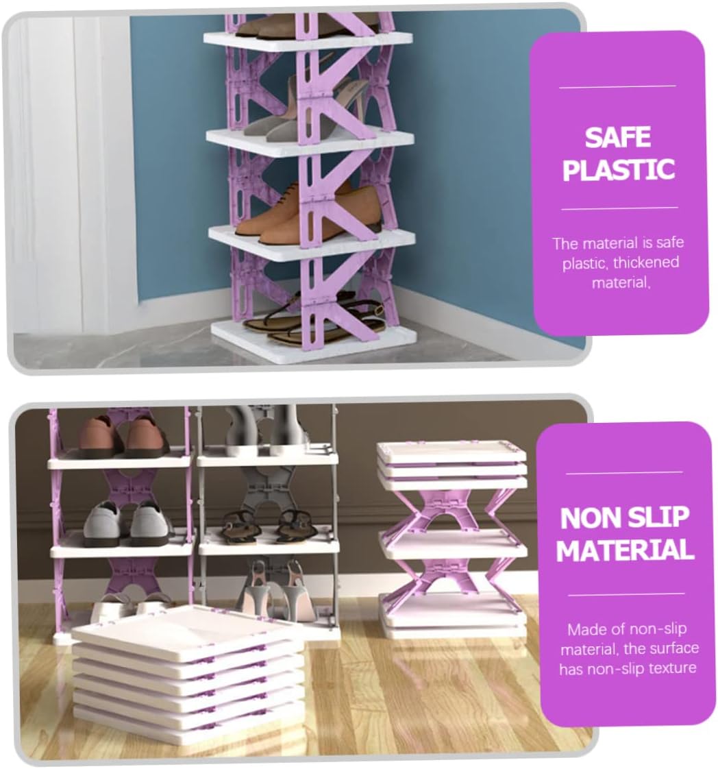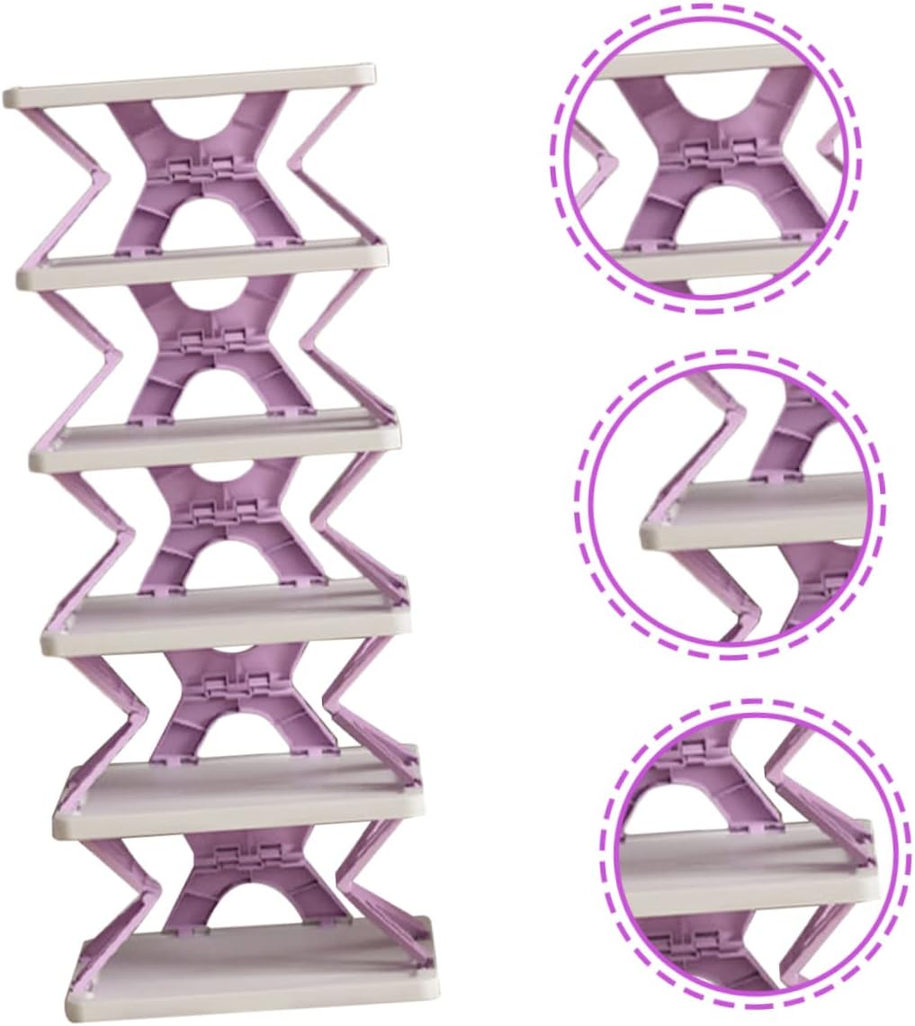 Package Include 1 x shoe rack Characteristics -Size:79.00X27.00X27.00cm/31.05X10.61X10.61in shoe rack tower -Material:Plastic small space shoe rack -Color:Purple stackable shoe storage -It comes with the compact size, which will not take up too much space. It has an excellent craftsmanship, which is delicate and fashionable multi layer shoe rack. -This shoe rack also allows you to find the shoes you want quickly. You can use it be stable without wobbling shoe racks. -The multi-tier shelf is free of installation and can be used right after opening to save space. space saving shoe storage -It has multi-layer space that can store many of your shoes at the same time, which can satisfy your daily storage needs Household Shoes Rack. -Made of quality material, the shoes rack can keep the living room nice and clean. Organize your shoes. This shoe rack is designed to organize your shoes houehold shoe organization.Goods Informationhouehold shoe organization A concise, compact and nice-looking shoe rack must be for you to collect your messy shoes and keep your house tidy! It is meticulously shaped into multi-tier with folding design, providing sufficient and balanced room for shoes