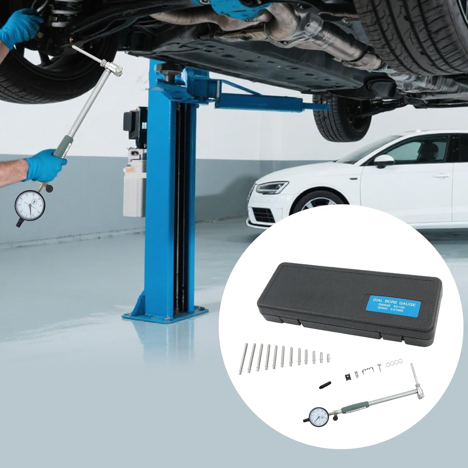 Description Engineered for metrology professionals, this cylinder dial bore gauge masters the measurement of cylinder bores through its precise mechanism and versatile anvils, which together deliver a wide range of highly accurate readings. Crafted from premium materials, its housing and components are built to endure the rigors of diverse workshop conditions, ensuring trustworthy performance. The dedicated custom case keeps accessories meticulously organized and simplifies transport to your job site.DetailsSlip-prevention Sleeve: An ergonomic slip-prevention sleeve on the handle offers improved control and stability during operation, preventing accidental slips.Smooth Edges:The smooth, rounded edges eliminate sharp burrs, offering added comfort and safety during prolonged use.ApplicationThis product is suitable for measuring the internal dimensions of cylinder bores and various machined holes.SpecificationsColor: Black, SilverMaterial: Aluminum, Cast Iron, PlasticProcess: ElectroplatingAssembly Required: YesMeasure Range: 5-16cm/1.97-6.3inMeasurement Accuracy: 0.01mm/0.00039inCase Size: 37*13.5*5.5cm/14.57*5.31*2.17inDial Indicator Size: 12*5.3cm/4.72*2.09inMeasuring Rod Size: 26*5cm/10.24*1.97inPackage Size: 37.5*14.5*6cm/14.76*5.71*2.36inGross Weight: 1.1kg/2.43lbsNet Weight: 1.05kg/2.31lbsPackage Included1* Cylinder Dial Bore Gauge1* Carrying CaseOther Needed AccessoriesNotes1.Please check the size carefully before ordering.