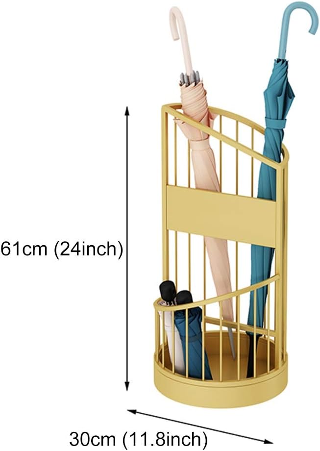 umbrella stand,offers you a fashionable and functional way for your home and office to store wet and dry umbrellas, walking sticks and wrapping paper, swords,baby toys, etc.Package contents: 1 × Umbrella rack. (Not including other ornaments)〠Specification 】:â— Material: Metal. Ironâ— Size: 30 × 61 cm / 11.8 × 24 inch (Diameter × Height)â— Color: Black, Brown, Gold, Green, Pink, Whiteâ— Whether to assemble: No.〠Features 】:â—umbrella holder is perfect for all size umbrellas or walking sticks and canes. Can store small and large umbrellas alike (including golf umbrella).â— Bottom drip tray designed to keep rainwater off the floor to prevent slipping and protect from damage to floors (especially wooden floors).â— With this practical eye catching , there is no need anymore that you find anywhere for an umbrella when it rains, or your family throw the wet umbrellas everywhere when get home from outdoor. This is just the decor which can help you make an organized home and a comfortable life.â— Can hide when not in use. Small and portable design makes it easy to hide in your closet or behind furniture without adding clutter to your home or office.〠Notice 】:★ If you are afraid it may scratch the floor, you can always stick on some felts.★ It doesn't matter if it smells, just leave it alone under ventilated place.★ Due to different batches and manual measurement, there may be slight error, thank you for your understanding.★ All the above pictures are displayed, and the different display effects may be different. Please refer to the actual product.