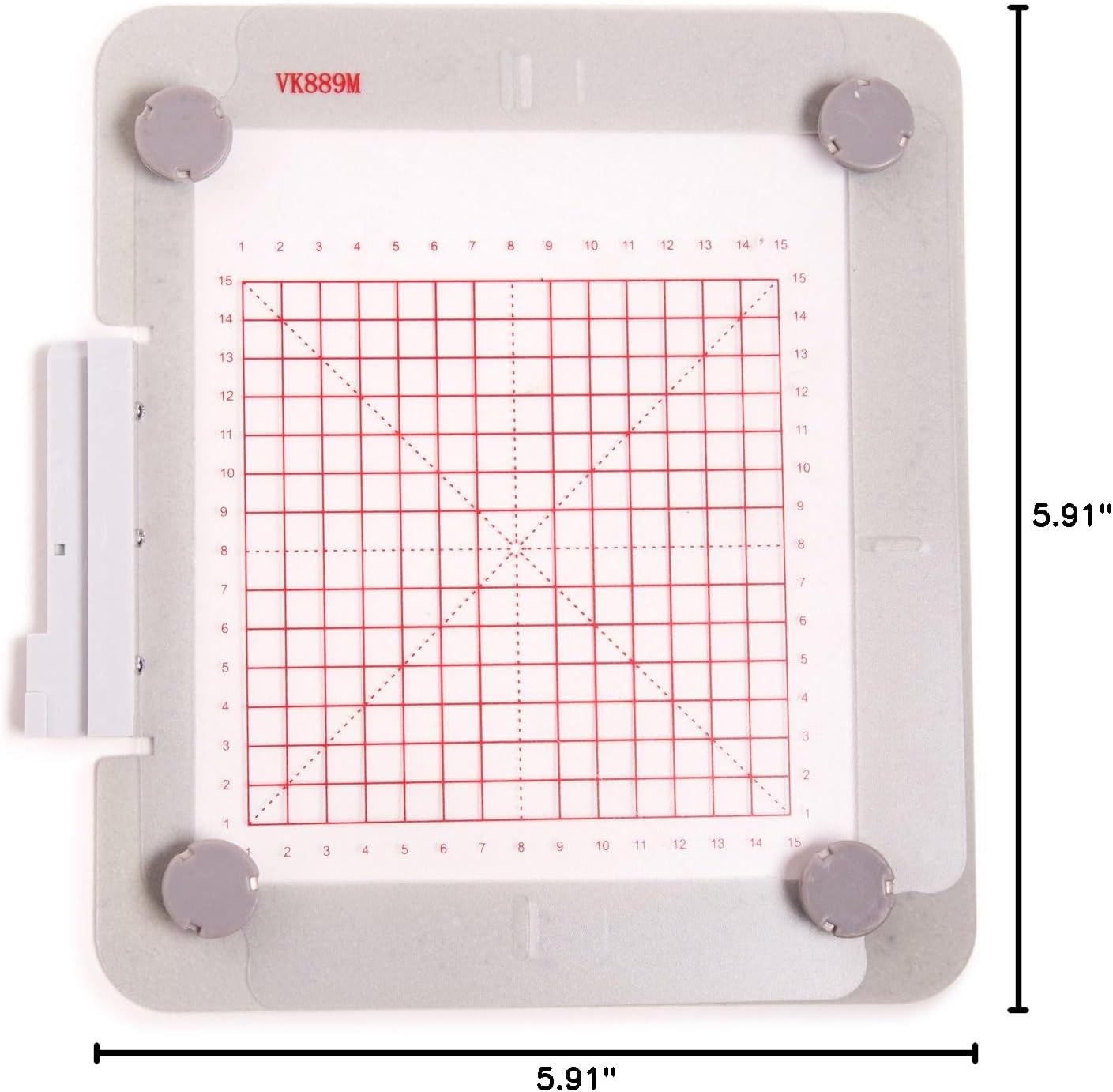 Metal Hoop 150mm x 150mm Embroidery Area 6"x6" And Same size hoop as the #920115096 Viking Do All Quilters Hoop And #820889096 Pfaff All Fabric Creative II Hoop Hooping ready-to-wear garments is difficult or impossible due to seams, narrow areas or buttons/rivets. When using the Metal Hoop 150mm x 150mm hooping won't be a problem! When you want to embroider on quilts or other projects where you do not want residuals from stabilizer on the back side, the metalhoop is perfect! Embroider without stabilizer. Embroidering several designs after each other or doing endless embroideries is easy, just remove the magnets and move the fabric. Ready to embroider the next design in no time! Includes: Metal hoop Template Magnets (4) Works with models: Designer Diamond Royal, Designer Diamond Deluxe, Designer Diamond, Designer Ruby Royal, Designer Ruby Deluxe, Designer Ruby and Designer Topaz 50, 30, 20, 40 & 25.