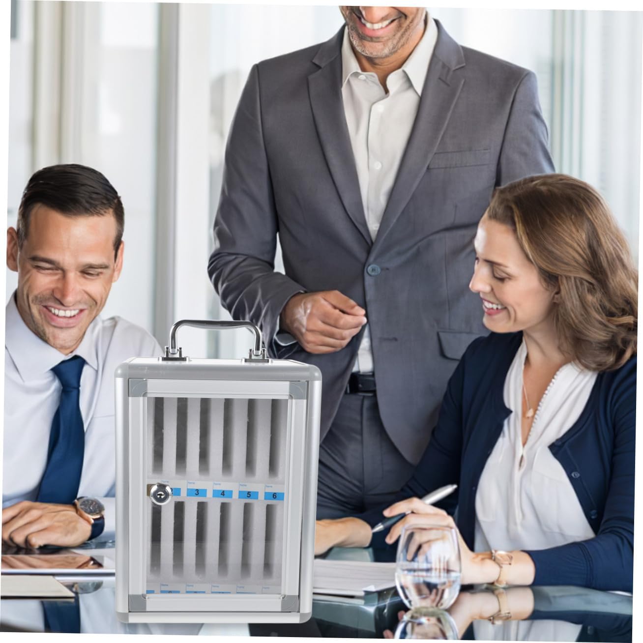 Package Include 1 x Phone Storage Box Features -Material:Aluminium alloy, fibreboard -Product Info:Mobile phone storage cabinet - Size: 27.80X21.30X18.80cm/10.93X8.37X7.39in -Made of aluminium alloy and fiberboard, it is sturdy and , multi-slot, anti-pressure cellphone holder classroom. -Humanized handle design, easy to carry; It comes with a safety lock to make your phone more secure cell phone locker. -Stylish and attractive appearance is for use in conference offices, schools and restaurants mobile phone storage locker. - ColorSilver -Fashionable wall-mounted design on the back can be hung on the wall without taking up storage locker. -The pearl cotton material built in the cabinet can prevent abrasion, each cell phone slot can be marked with numbers more convenient to facilitate the search of your phone.Goods Descriptioncell phone metal storage locker The built-in is used to prevent abrasion.slots phone locker Made of high-grade material, this phone storage box is for long-term use.classroom phone holder It can supervise your or students' mobile phones without leaving their hands