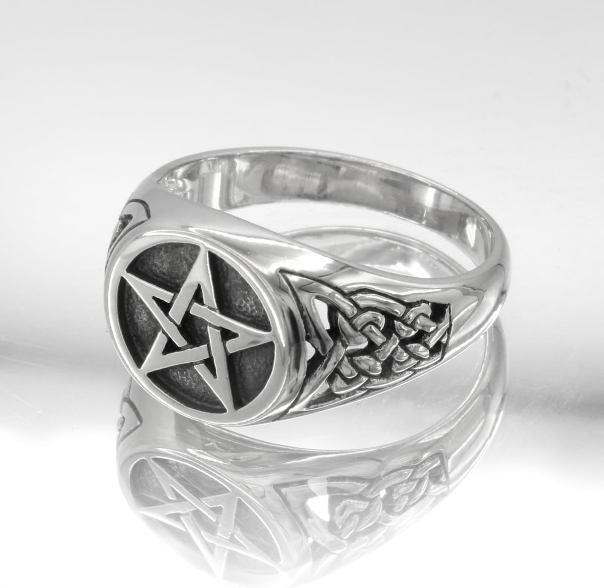 Embrace the Mystical with this Sterling Silver Pentacle Ring. This exquisite Sterling Silver Pentacle Ring is a captivating piece of jewelry that blends timeless symbolism with modern elegance. Crafted from high-quality .925 Sterling Silver and polished to a brilliant shine, this ring is both durable and stylish. The pentagram, a powerful symbol of protection and balance, has been revered for centuries. In ancient traditions, it represented the four elements (earth, air, fire, water) harmoniously united with Spirit. This Celtic Pentacle ring is a testament to its enduring significance, making it a meaningful and eye-catching accessory for both men and women.