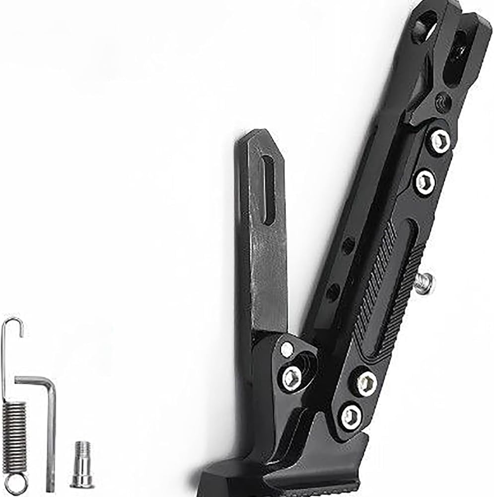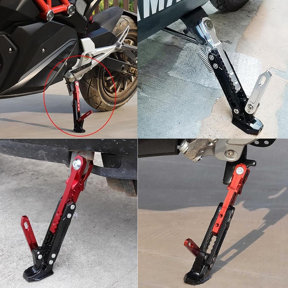 【SPECIFICATION】1.Product name:Motorcycle Kickstand2.Material: High-grade Aluminum Alloy3.Color: As shown in the figure【FEATURES】1.Lightweight yet strong, precision-crafted for durability and reliable support.2. Height and length can be adjusted to fit different motorcycles and terrains, providing optimal balance and stability.3.Widened Base Plate: Prevents tip-overs on soft surfaces like dirt, gravel, or sand, giving your bike stable support anywhere4.Reinforced load-bearing design supports heavy motorcycles securely.5.Bolt-on installation, available in multiple colors for a custom look.【PACKAGE INCLUDES】1 × Motorcycle Kickstand【SERVICE】1.Please check if this product is compatible with your motorcycle before purchasing.2.If you encounter problems during installation and use, please contact us in time, we will provide you with the best solution.