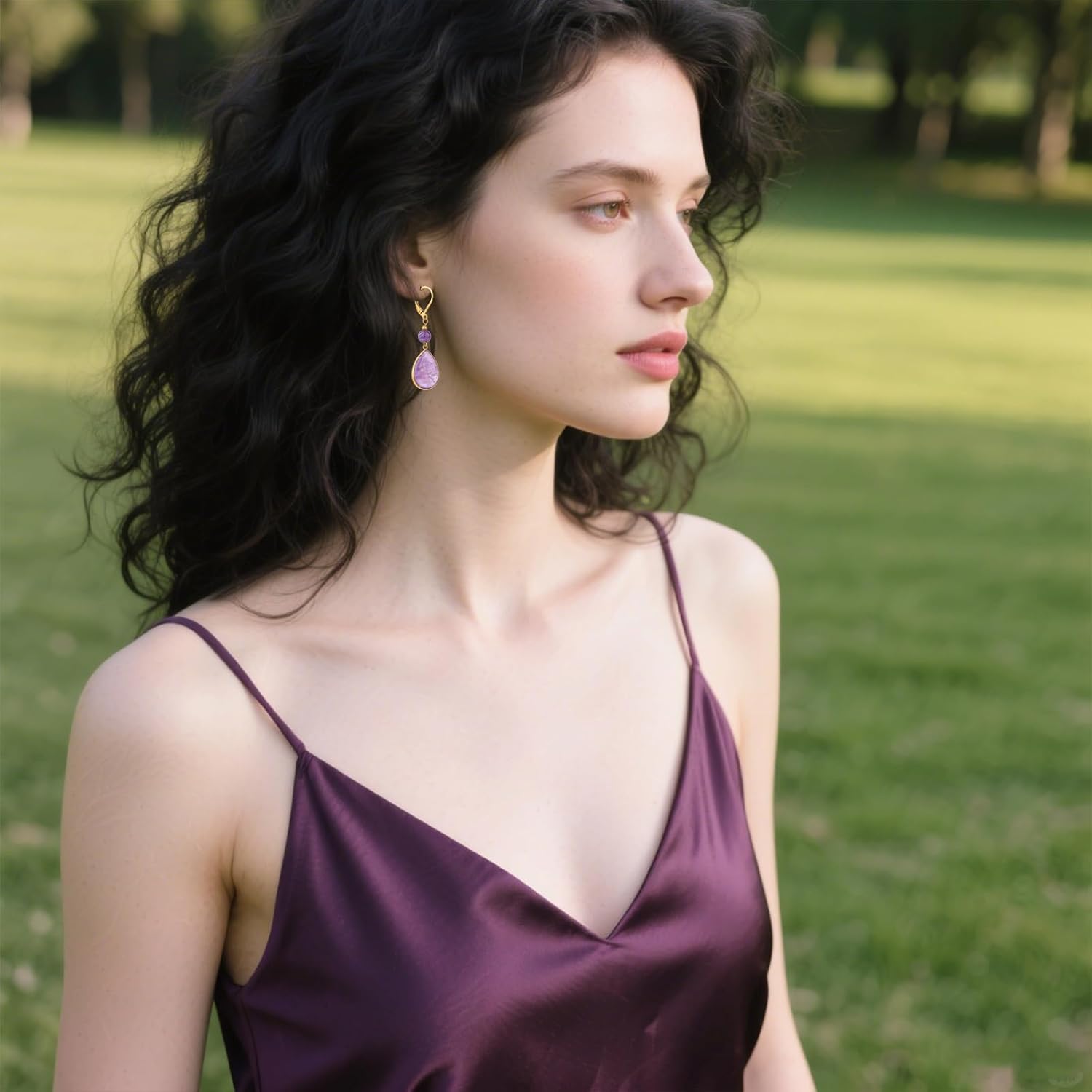 TaYolnFaSo Natural Gemstone Teardrop Lever Back Earrings 18k Real Gold Plated Malachite/Turquoise Drop Earring Teardrop Jewelry Birthday Gift for Women