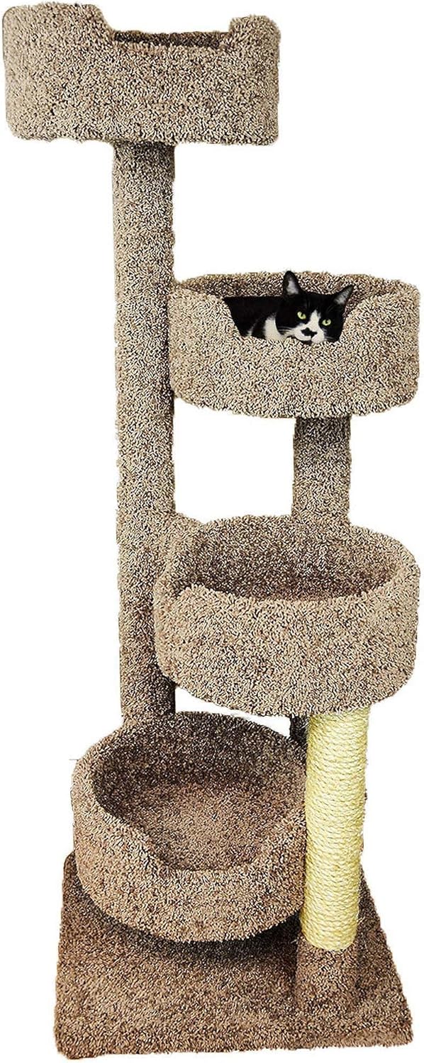 New Cat Condos is excited to bring to you our New Cat Condos Solid Wood Large Cat Tower. At 65 inches tall this cat tower provides the perfect height for your kitties to feel like they are on top of the world. With 4 spacious perches measuring 17" wide and 7" high this cat tree is great for multiple cat households or your active kitty. We use high quality materials such as wood, household carpet and unoiled sisal rope. The high quality materials will ensure you have a product that will be sturdy, safe, comfortable and last your kitties much longer. This cat tree will require minimal assembly and is handcrafted in the USA.