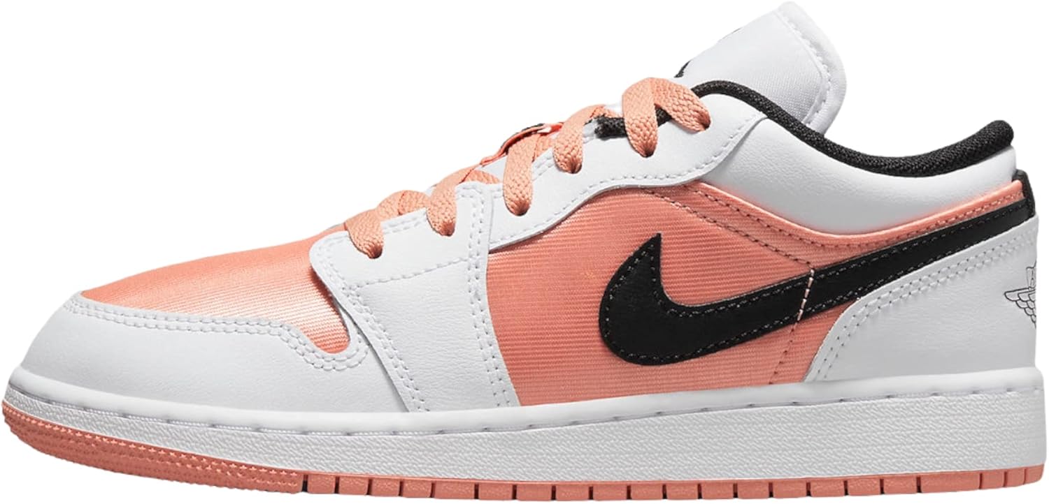 • A light grey “Wings” logo is embroidered on the heel and a pink Jumpman is stitched onto the black nylon tongue