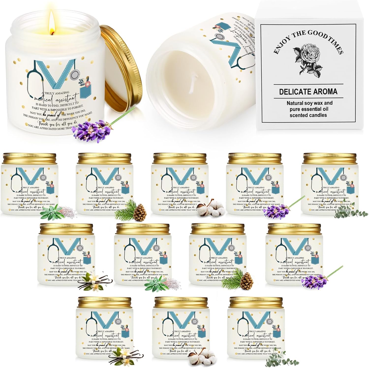 Features: Designed for social workers, coworkers, teams, and volunteers, this candle set works well for office appreciation, work anniversaries, seasonal gifting, and everyday thank-you moments across professional and personal settings. Made with soy wax for a clean and steady burn, these jar candles provide consistent fragrance and lasting enjoyment. Suitable for personal use, desk decorations, relaxation, or bulk gifting for social service professionals. Material: soy wax scented candles Color: white, gold Size: 3.5 oz Package includes: 12 x Candles Notes: Manual measurement, please allow slight errors on size. The color may exist a slight difference due to different screen displays.