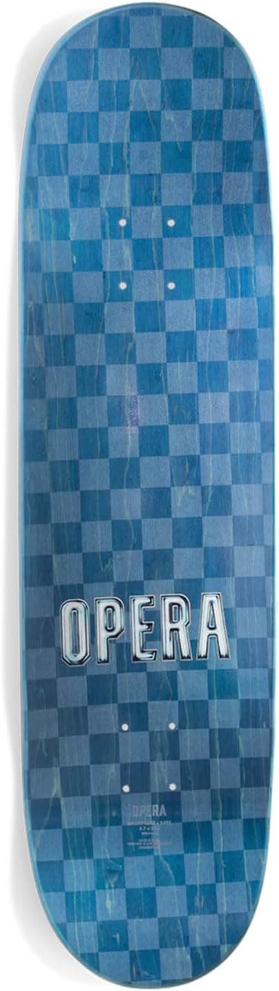 Torn split veneer (Comes in assorted 3 color layups). 7-ply 100% North American Maple with Epoxy Glue. Embossed graphic detail. Individually Pressed. Medium Concave, Medium Kick. This board measures 8.7" x 32.63" with a 14.88" Wheelbase. Also includes a sheet of Black Diamond Griptape.