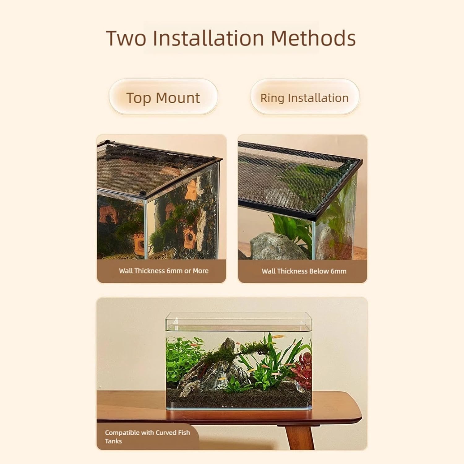 Features: Get the of your pet fish with this aquarium netting, designed to fish from jumping out while blending seamlessly with your tanks aesthetic; includes mount holders for secure installation on various tanks sizes. Sturdy netting resists tearing and wear, offering long term use, while its clear netting maintains visibility and aesthetic. Ideal for aquarium enthusiasts and pet owners seeking a tool to protect fish, birds, or small animals from escaping enclosures. Perfect for home aquariums, birdcages – this versatile netting screen safeguards pet while maintaining enclosure and visual appeal. Beyond pet , this multipurpose netting serves as unobtrusive barrier against debris and can be creatively adapted to improve your tanks decorative setup. Specifications: Component: Fibre Sheet Size 1: Approx.60x45cm/23.62x17.72in Size 2: Approx.80x40cm/31.49x15.75in Size 3: Approx.100x40cm/39.37x15.75in Size 4: Approx.100x50cm/39.37x19.69in Size 5: Approx.120x50cm/47.24x19.69in Quantity: 1 Set Note: 1.Please allow 1-2cm errors due to manual measurement, make sure that you do not mind before you order. 2.Due to the differences between different monitors, the picture may not reflect the actual color of the item. Package includes: 1 Set Screen Net Jump Guard