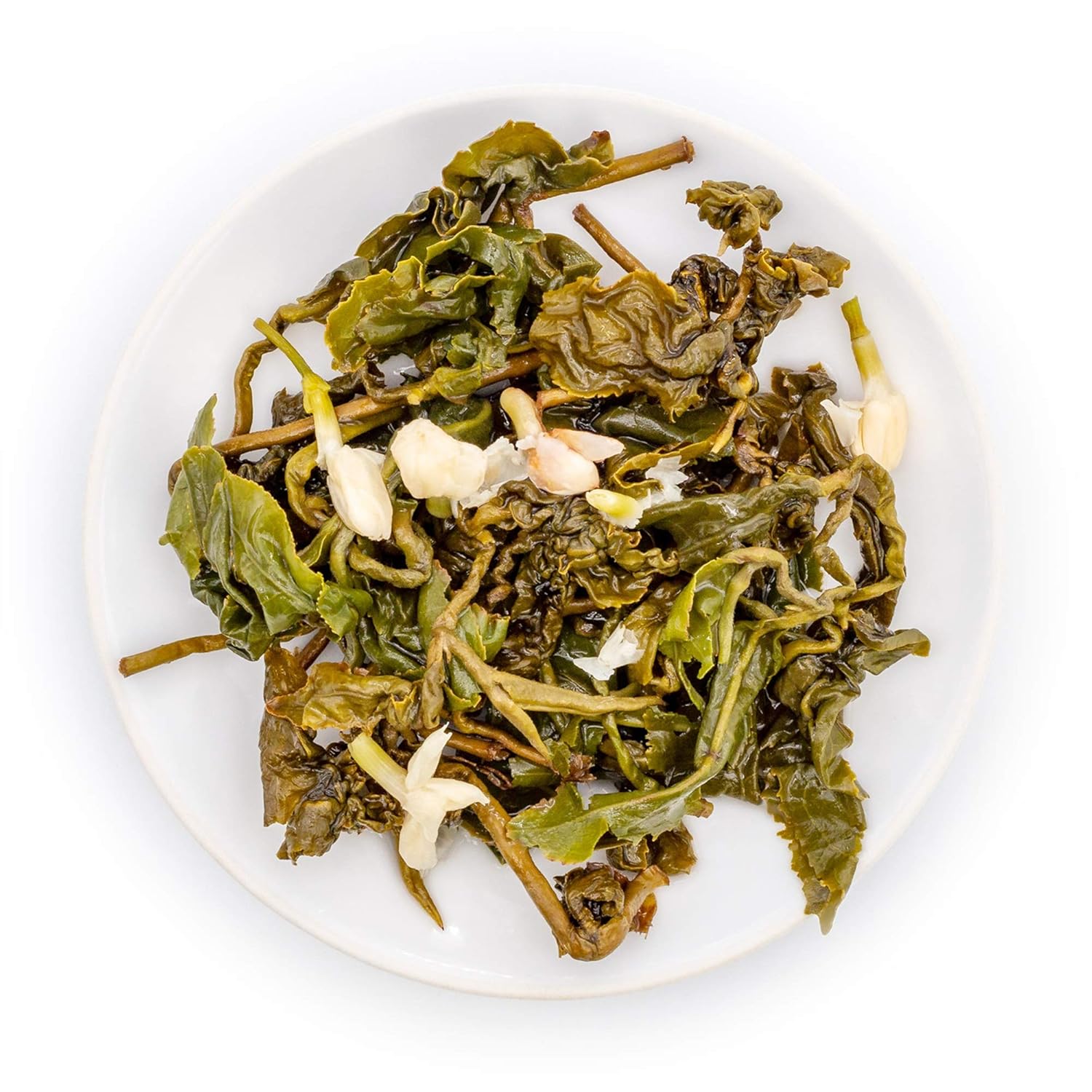 Our jasmine Oolong Tea is made from taiwan high mountain oolong tea leaves processed through multiple Scenting Crafts with jasmine flowers. This tea can sufficiently absorb the floral fragrance, which not only maintains the natural Oolong tea flavor, but also owns fresh and brisk floral aroma. Brewing Tips: Chinese Gongfu Method: Gaiwan 150-200ml 5-7g tea Water temperature: 212℉ / 100℃ 6 steeps: rinse, 30s, 35s, 45s, 60s, 80s, 120s. Cup Method: Teacup: 12oz / 355ml Water temperature: 212℉ / 100℃ 3-5g tea Brewing time: 2-4 minutes.